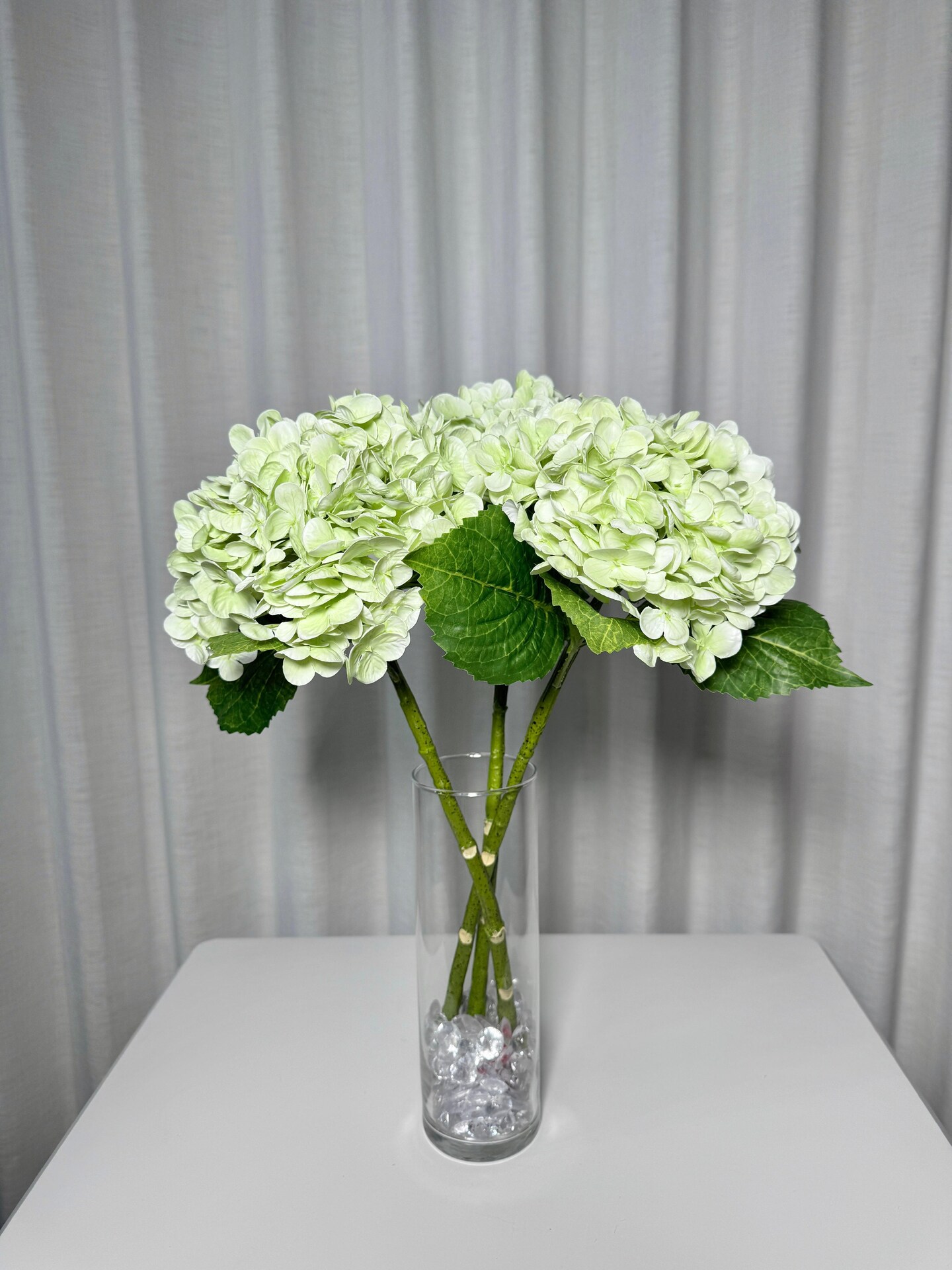 Ariane Lifelike Artificial Green Hydrangea Flowers 20” Real Touch, Set of 3 Stems, Large Faux Blooms for Wedding, Home, Floral Arrangements & Centerpieces