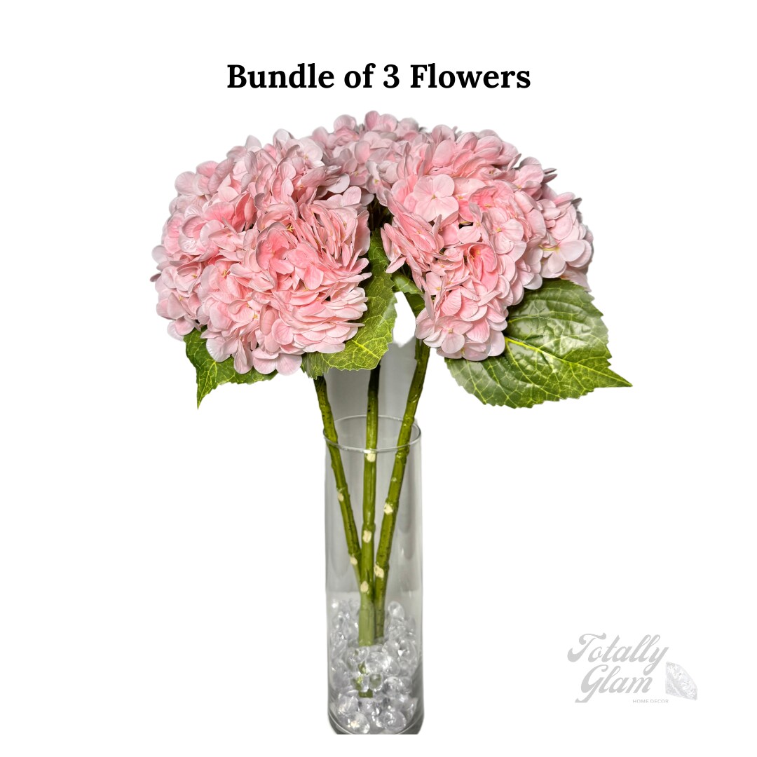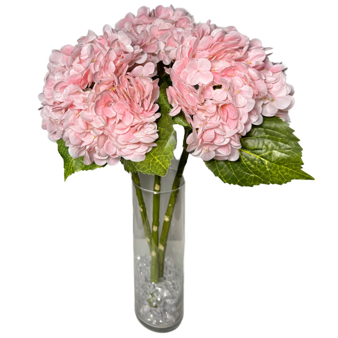 Ariane Real Touch Artificial Light Pink Hydrangea Flowers 20” Silk Stems, Set of 3, Soft Blush Faux Floral for Weddings, Bouquets, Home & Centerpieces