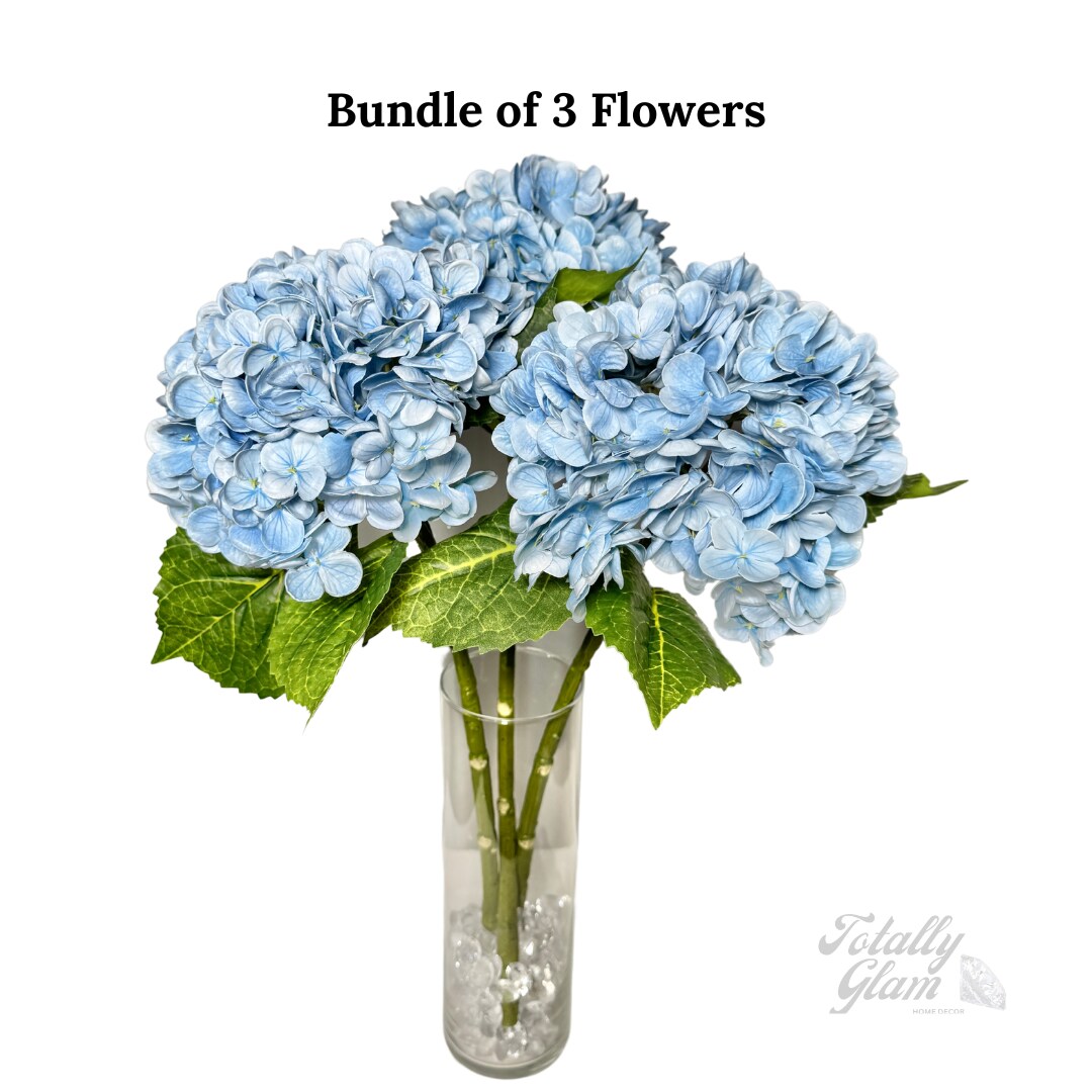 Ariane Real Touch Artificial Mixed Blue Hydrangea Flowers, 20” Silk Floral Stems, Set of 3, Faux Blue Flower Stems for Weddings & Home Décor