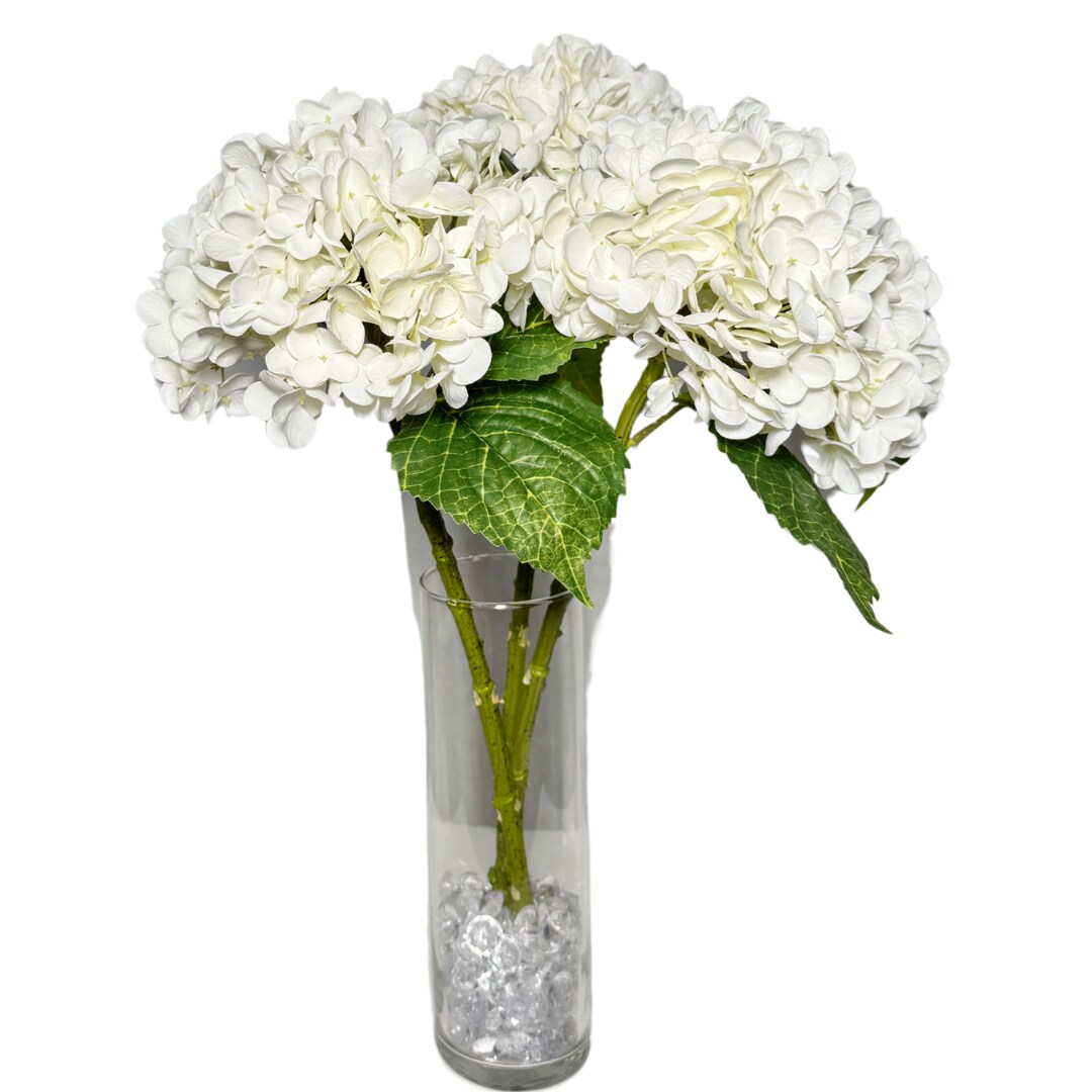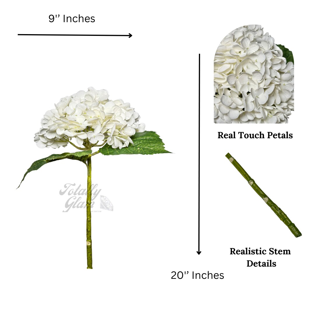 Ariane Real Touch Artificial White Hydrangea Flowers 20” Silk Floral Stems, 3-Piece Bundle, Faux Wedding Bouquets, Home & Event Décor