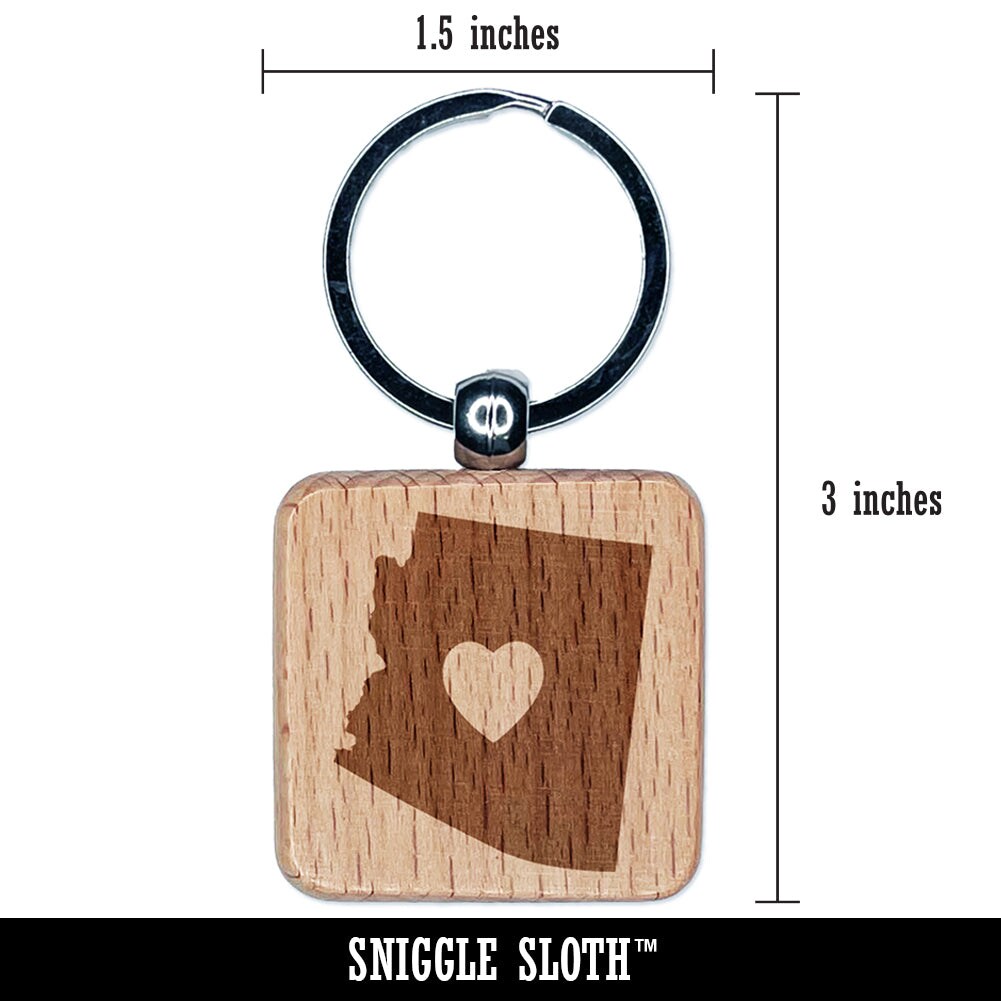 Arizona State with Heart Engraved Wood Square Keychain Tag Charm