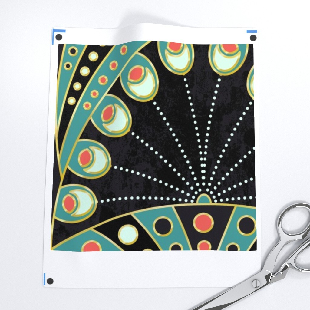 Art Deco Feather Nouveau Geometric Large Scale Boheme Symmetric Black And Teal Custom Printed Fabric by Spoonflower Various Fabrics by the Yard or Fat Quarter