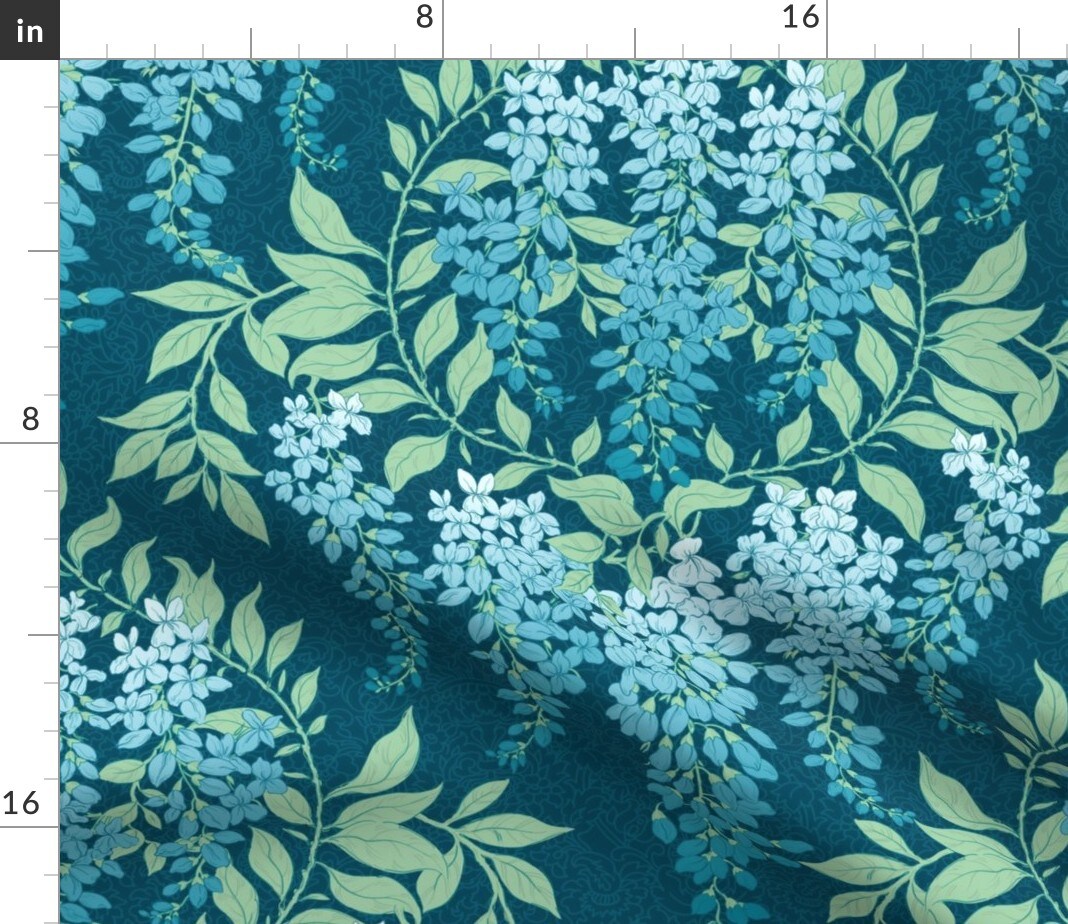 Art Deco Floral Garden Botanical Cottagecore Wisteria Vine Custom Printed Fabric by Spoonflower Various Fabrics by the Yard or Fat Quarter
