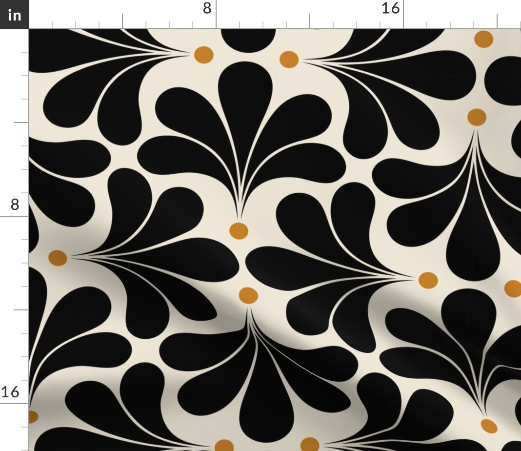 Art Deco Floral Minimalist Flowers Neutral Mid Century Black Beige Abstract Flowers Geometric Retro Custom Printed Fabric by Spoonflower Various Fabrics by the Yard or Fat Quarter