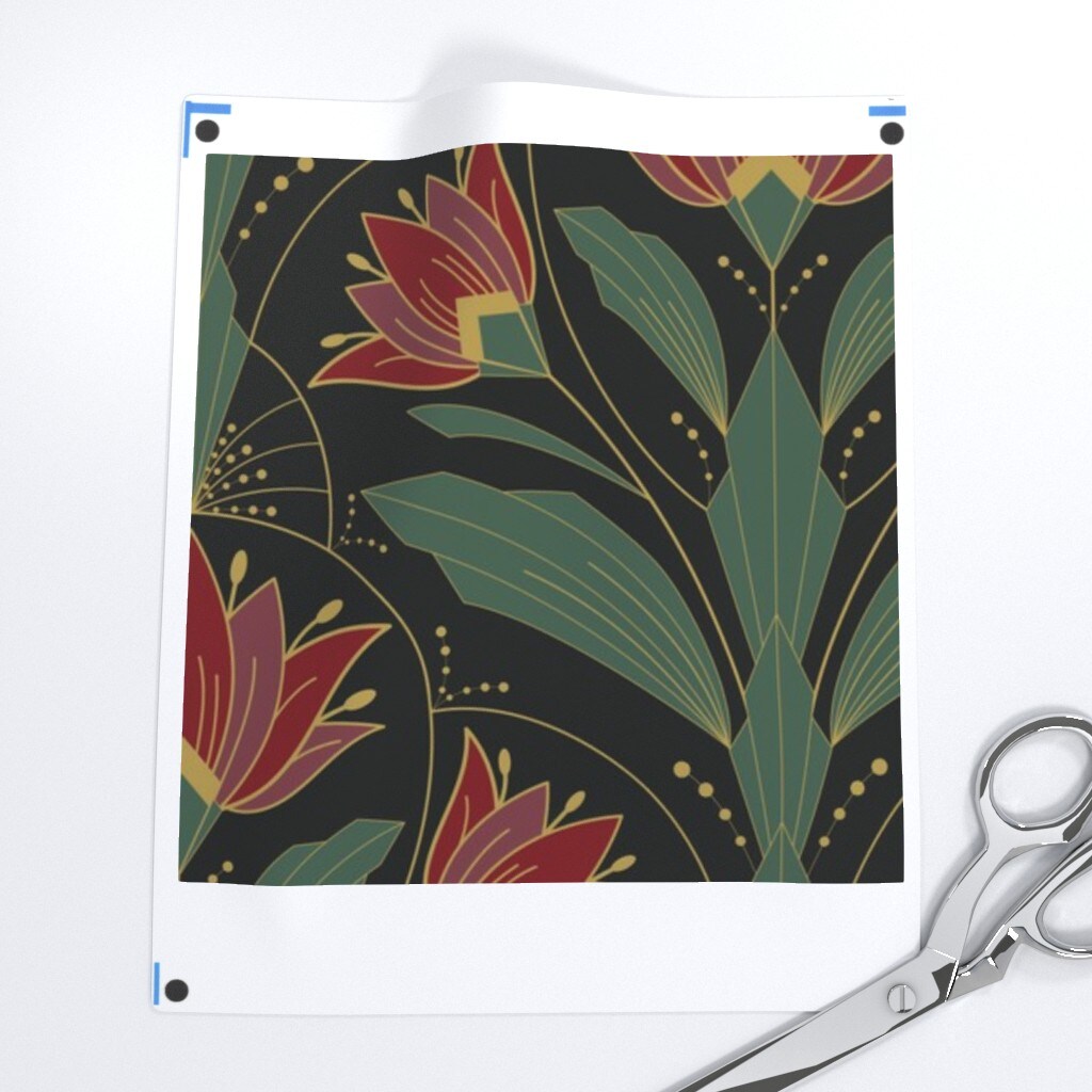 Art Deco Floral Red Green Botanical Bold Retro Flowers Traditional Elegant Custom Printed Fabric by Spoonflower Various Fabrics by the Yard or Fat Quarter