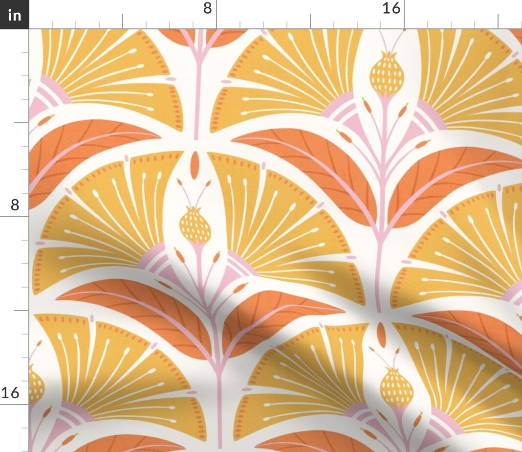 Art Deco Flowers Yellow Orange Pink Large Scale Geometric Scallop Mid Century Bold Custom Printed Fabric by Spoonflower Various Fabrics by the Yard or Fat Quarter