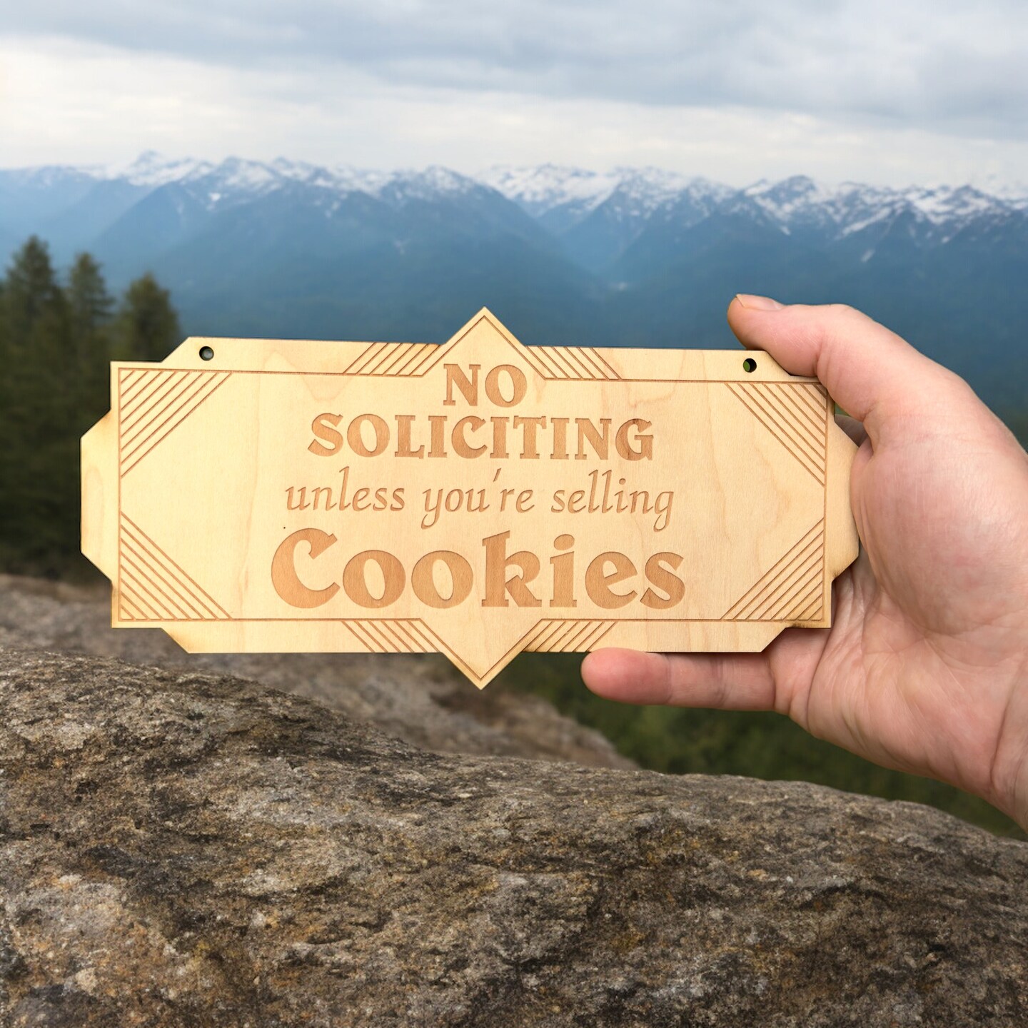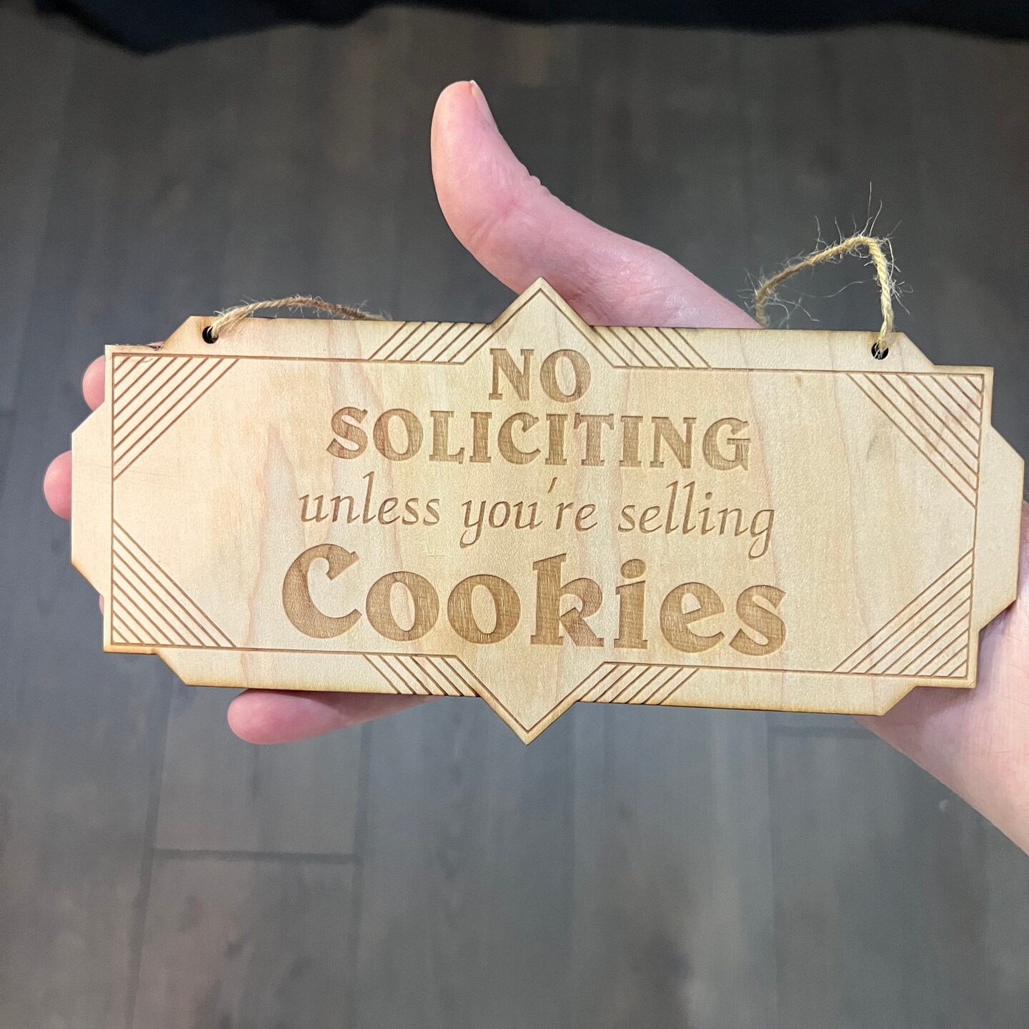 Art Deco No Soliciting unless you are selling cookies Raw Wood door sign 4x8