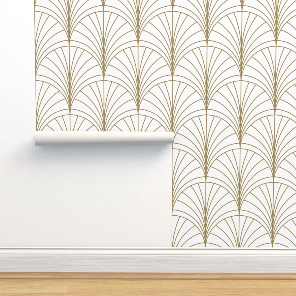 Art Deco Nouveau Floral Minimal Vintage Luxury Geometric Custom Pre-pasted Wallpaper by Spoonflower Pre-Pasted Wallpaper 2FT Wide