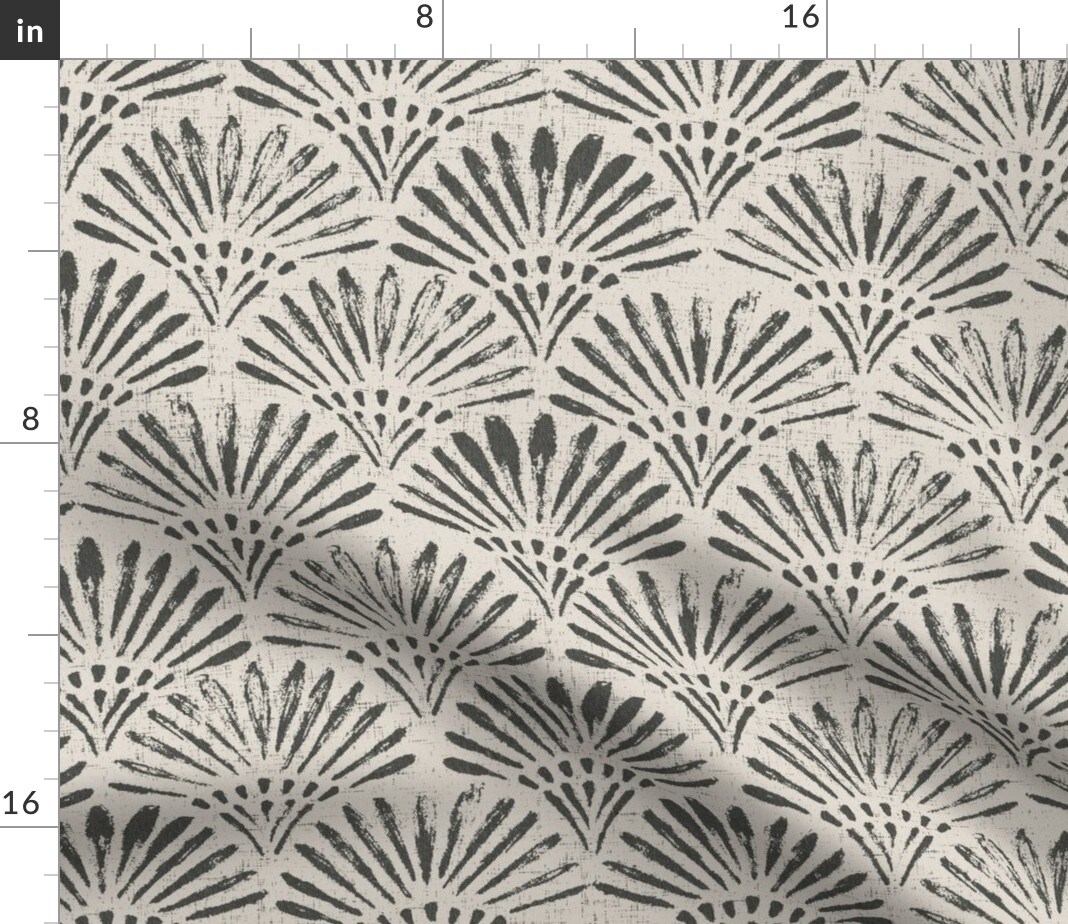 Art Deco Scallop Black Tan Geometric Arches Boho Weathered Block Print 1920S Custom Printed Fabric by Spoonflower Various Fabrics by the Yard or Fat Quarter