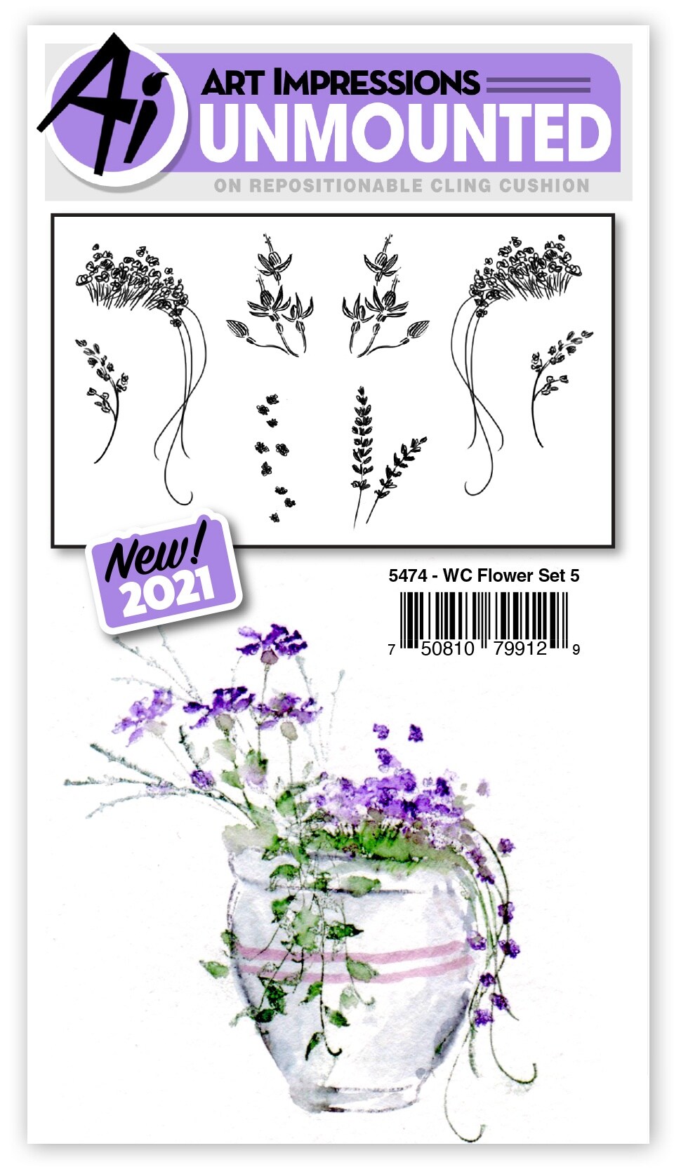 Art Impressions Watercolor Cling Rubber Stamps-Flower Set 5
