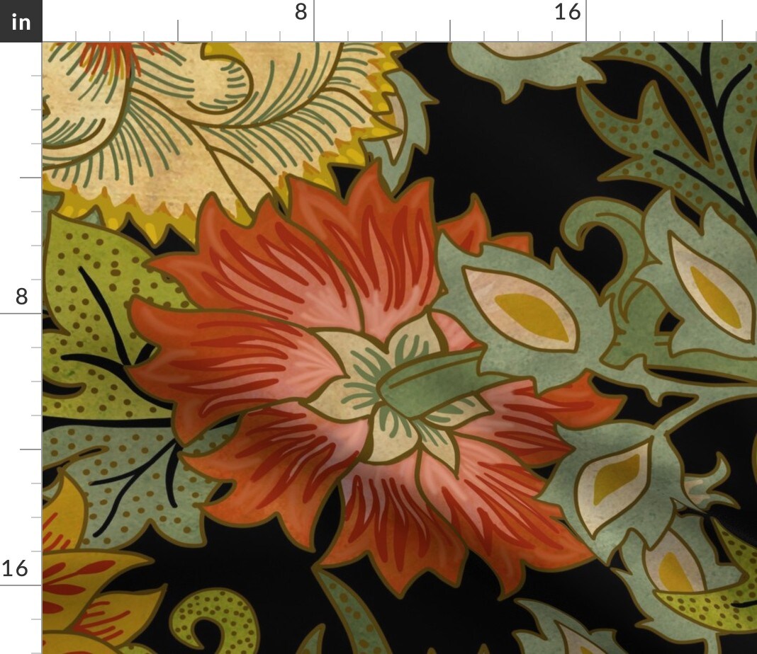 Art Nouveau Folk William Morris Arts And Crafts Black Floral Custom Printed Fabric by Spoonflower Various Fabrics by the Yard or Fat Quarter