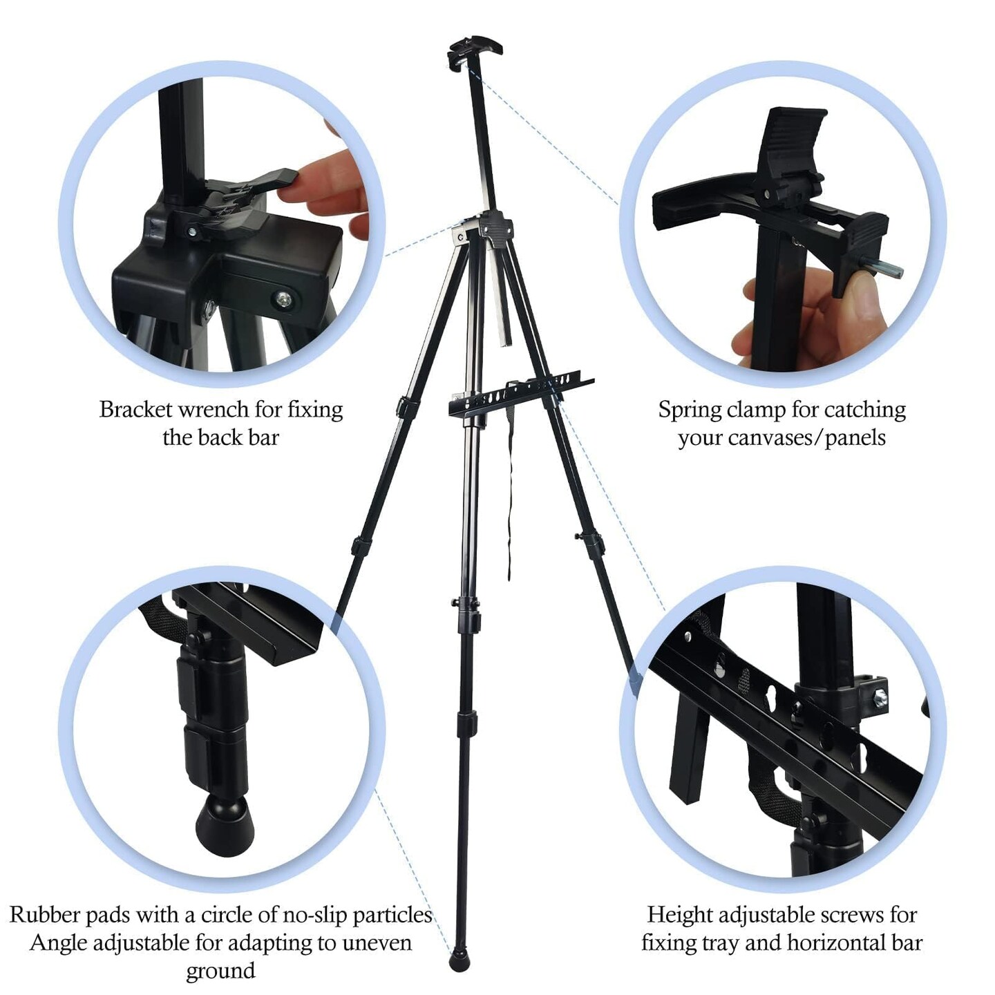 Art Painting Display Artist Easel Stand,Ns Jymb Portable Metal Adjustable Easels for Painting Canvases Height from 17 to 66 Inch - Carry Bag for Table-Top/Floor Displaying and Wedding Signs - Black