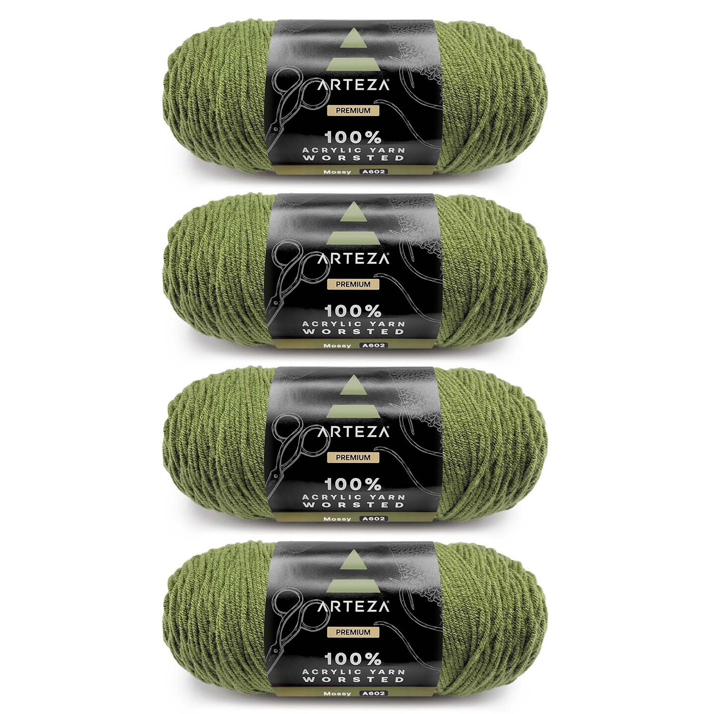 Arteza 100% Worsted Acrylic Yarn 4-Pack, Mossy