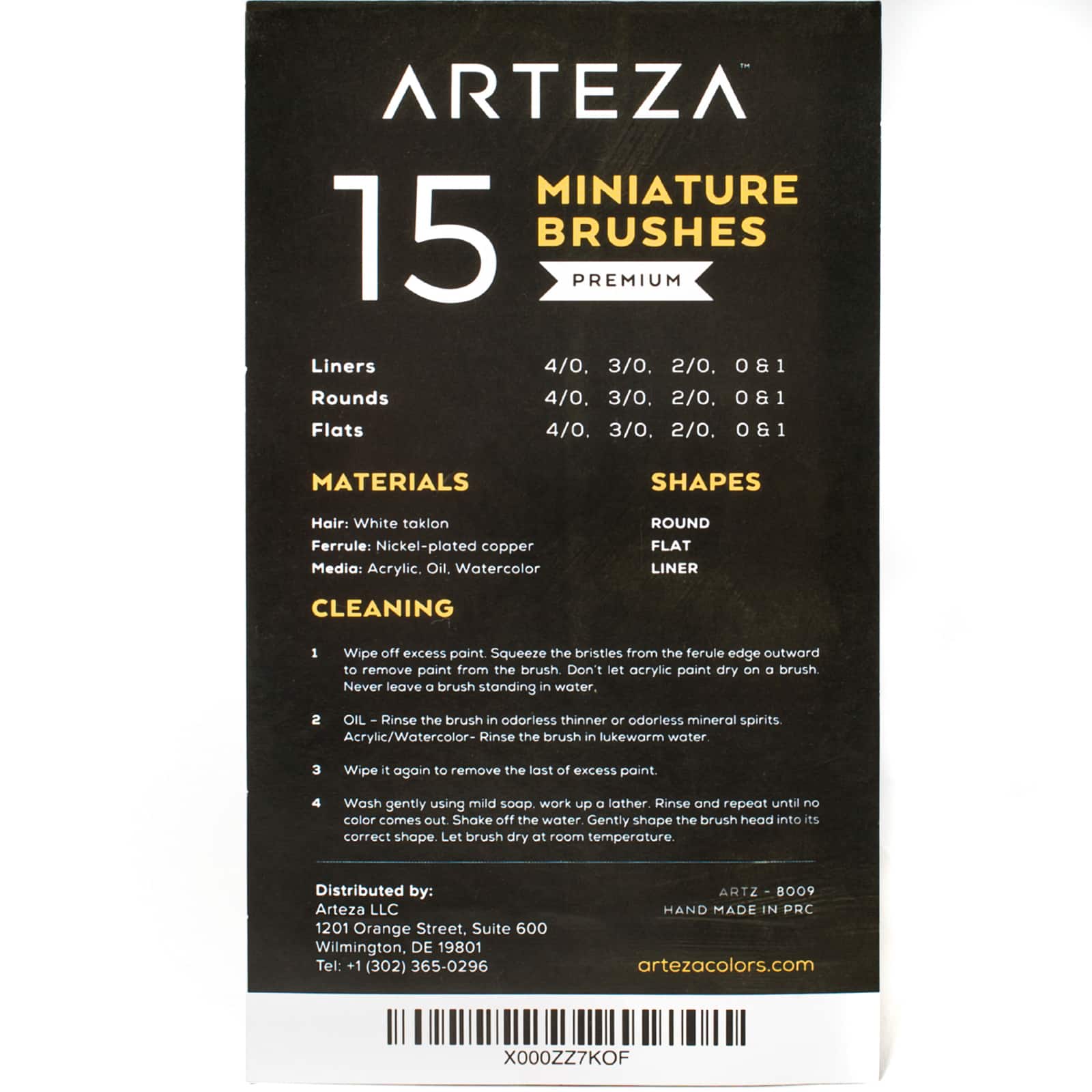 Arteza® Handmade Taklon Hair 15 Piece Miniature Detail Paint Brush Set