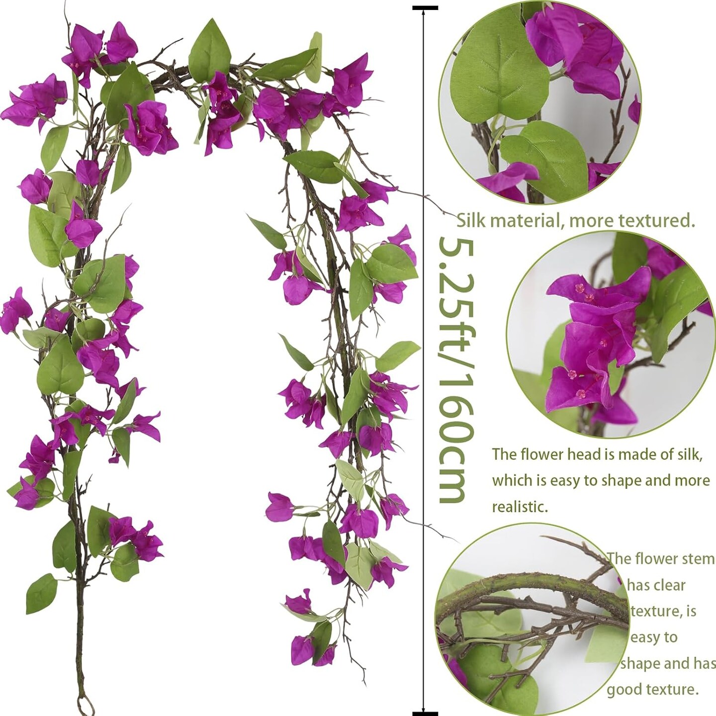 Artificial Bougainvillea Flowers Garland Purple Silk Bougainvillea Vines