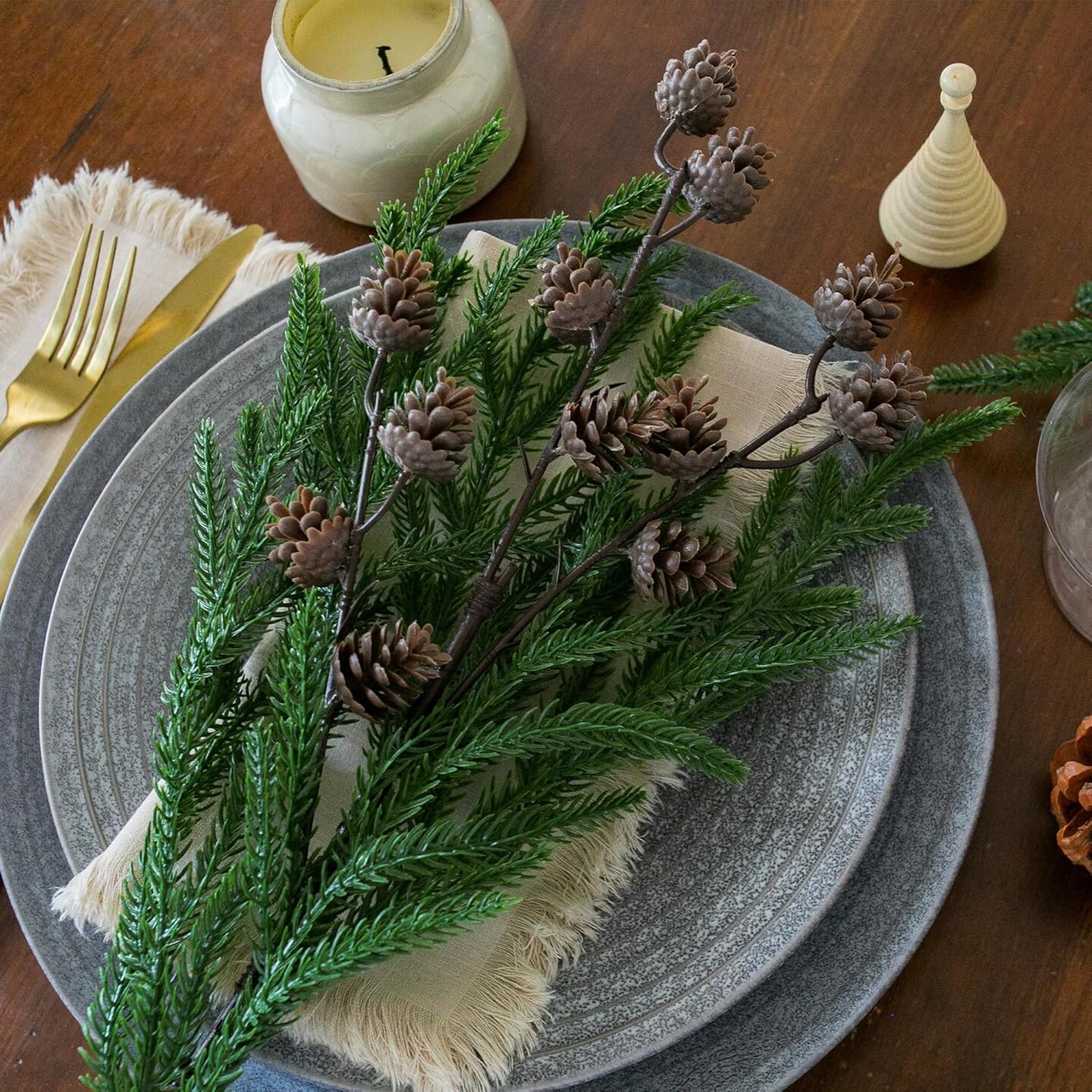 Artificial Christmas Norfolk Pine Stems Branches for Vases (Small Pine Cones) 1"D x 1"W x 1"H