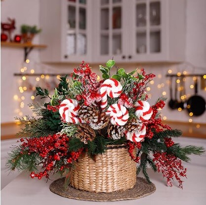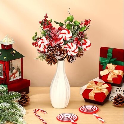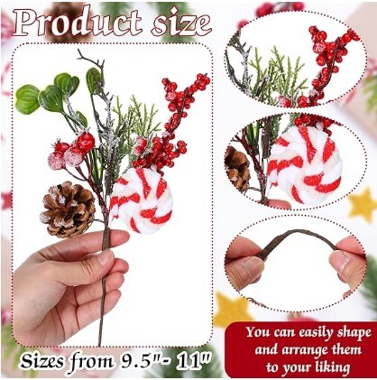 Artificial Christmas Picks (Set of 6) DIY Crafts with Berry Picks, Stems, and Pine Cones Christmas Flower Wreath Fake Tree Stems Xmas Gifts Holly Branches Gift Wrap with a Garland