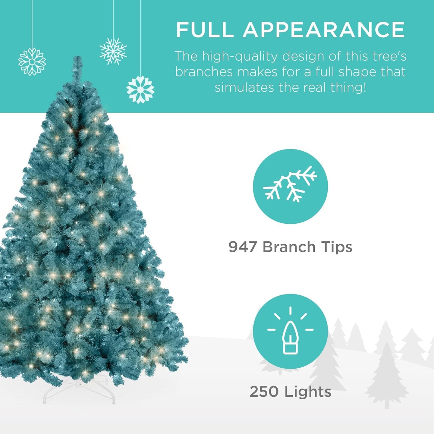 Artificial Christmas Tree Hinged Pine with 250 Lights, 1,000 Tips & Foldable Base Pre-Lit Outdoor Holiday Decor