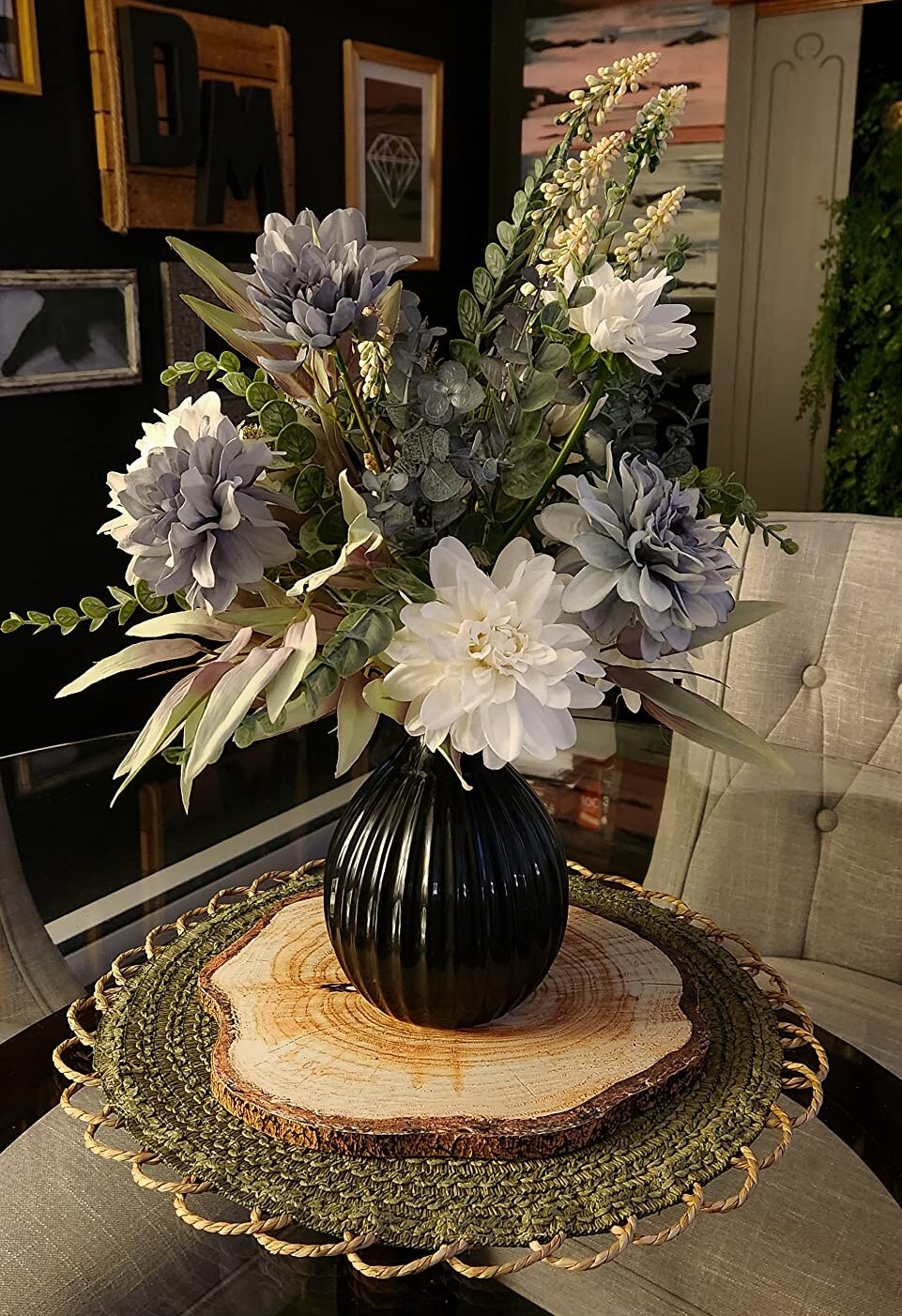 Artificial Dahlia Bouquet – White and Blue Silk Flowers for Vase, Home Table Decor Bathroom Decoration