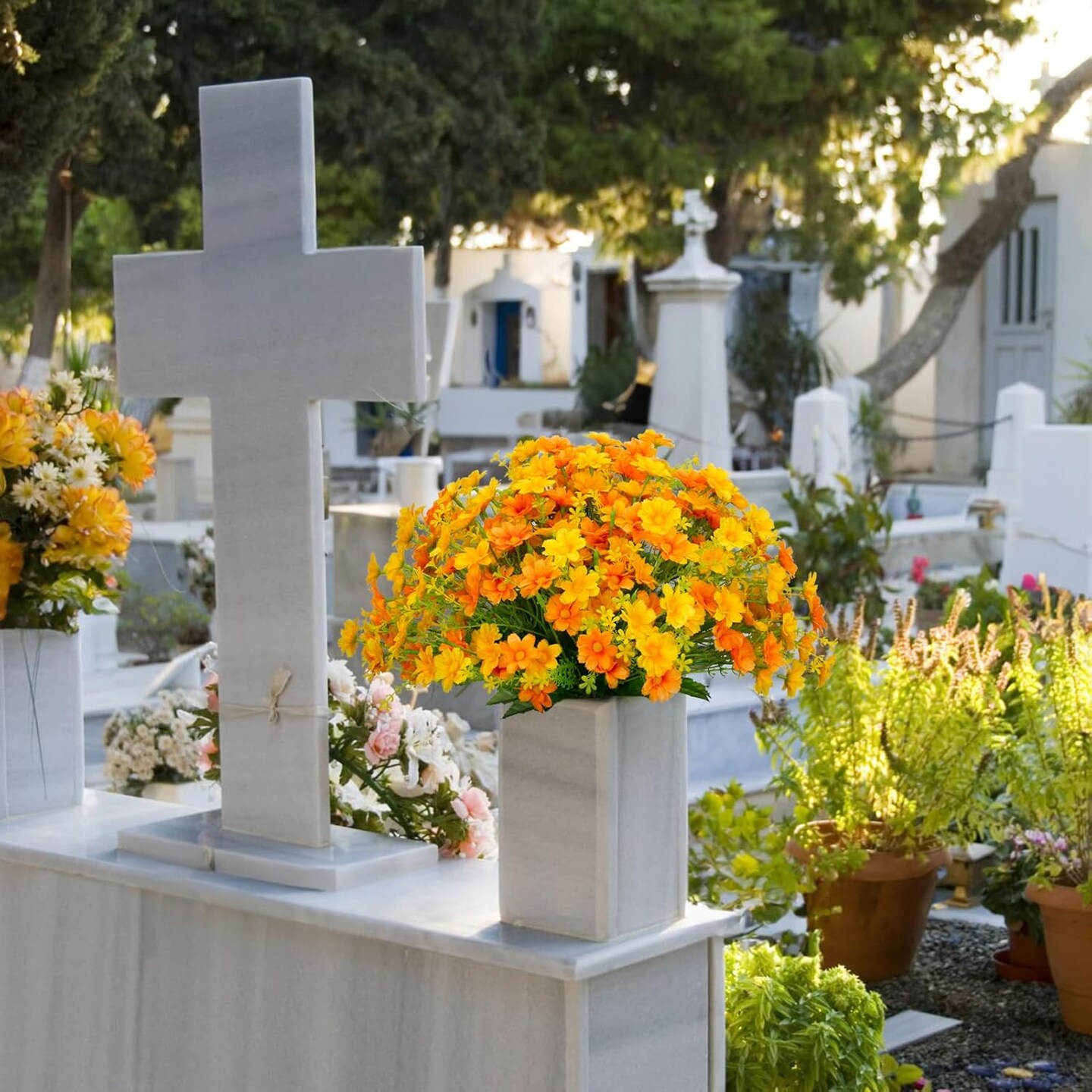 Artificial Daisy 8 Bundles Mums Flowers Outdoor Summer Bushes
