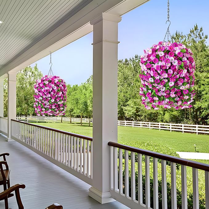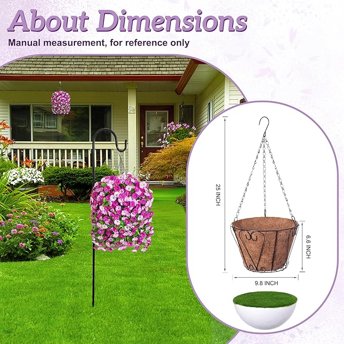Artificial Fake Hanging Flowers Basket for Spring Decor, Faux Silk Flower in Planter for Summer, Outdoor Artificial Floral for Home Porch Yard(Double Lotus)