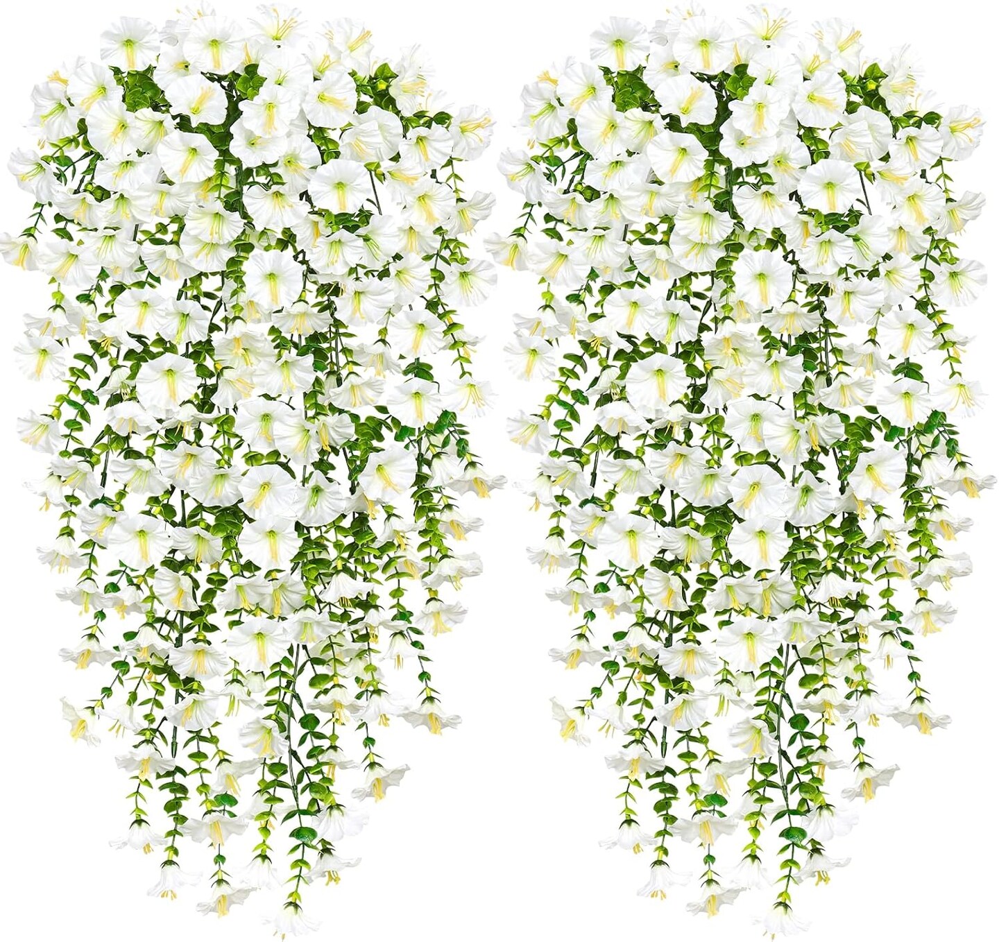 Artificial Fake Hanging Flowers Plants for Outdoor Decoration 2PCS (White) 5"D x 5"W x 15"H