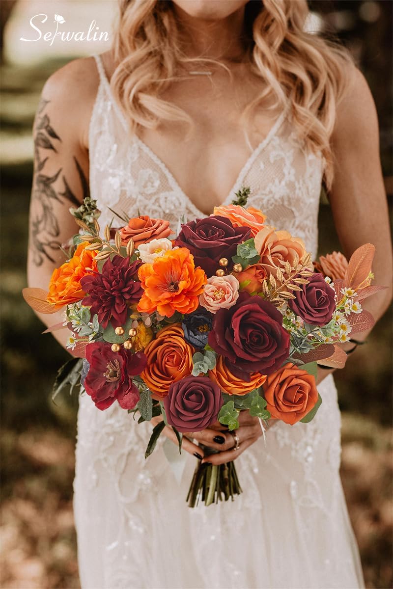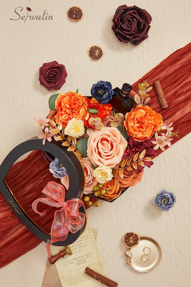 Artificial Fall Flowers Orange Burgundy Silk Flowers