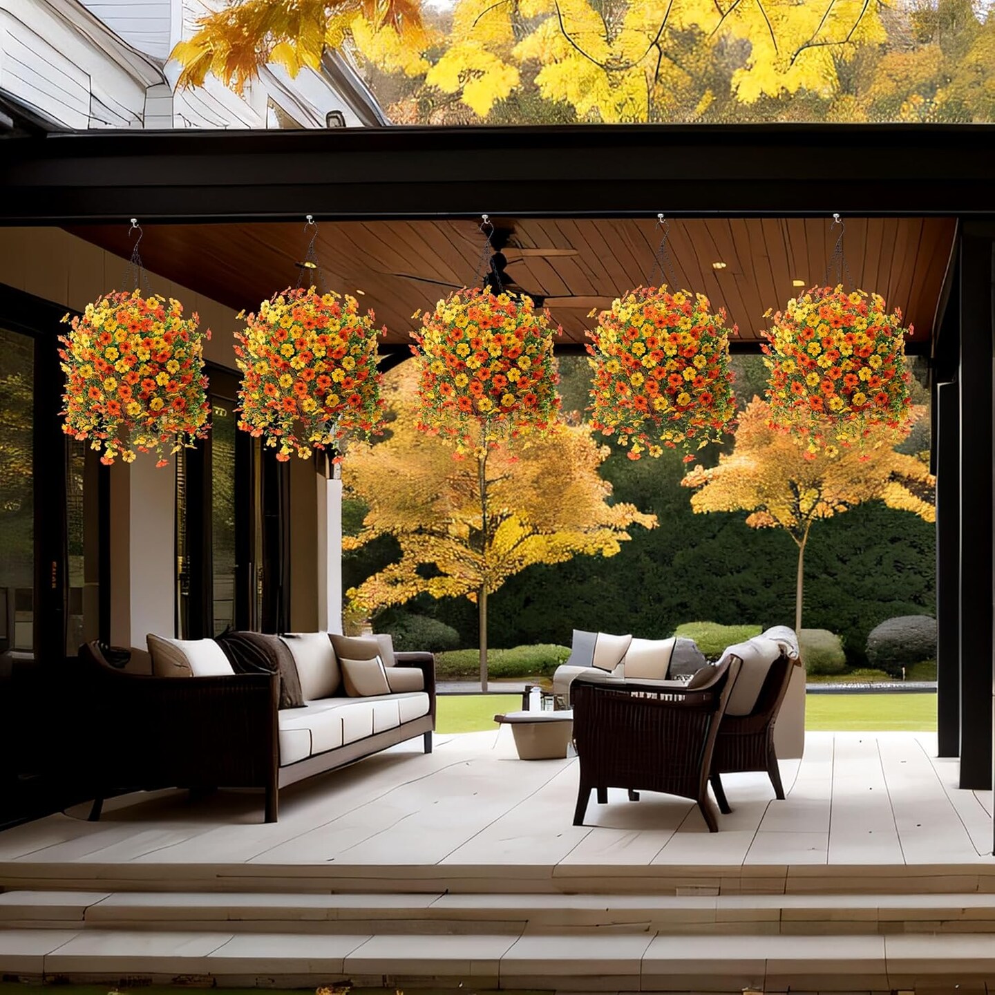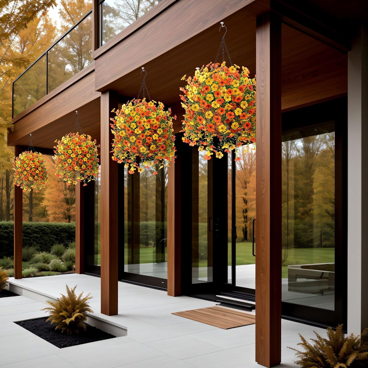 Artificial Fall Hanging Flowers with Basket - Yellow Orange