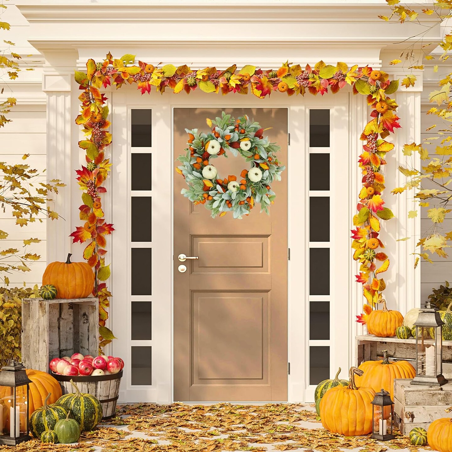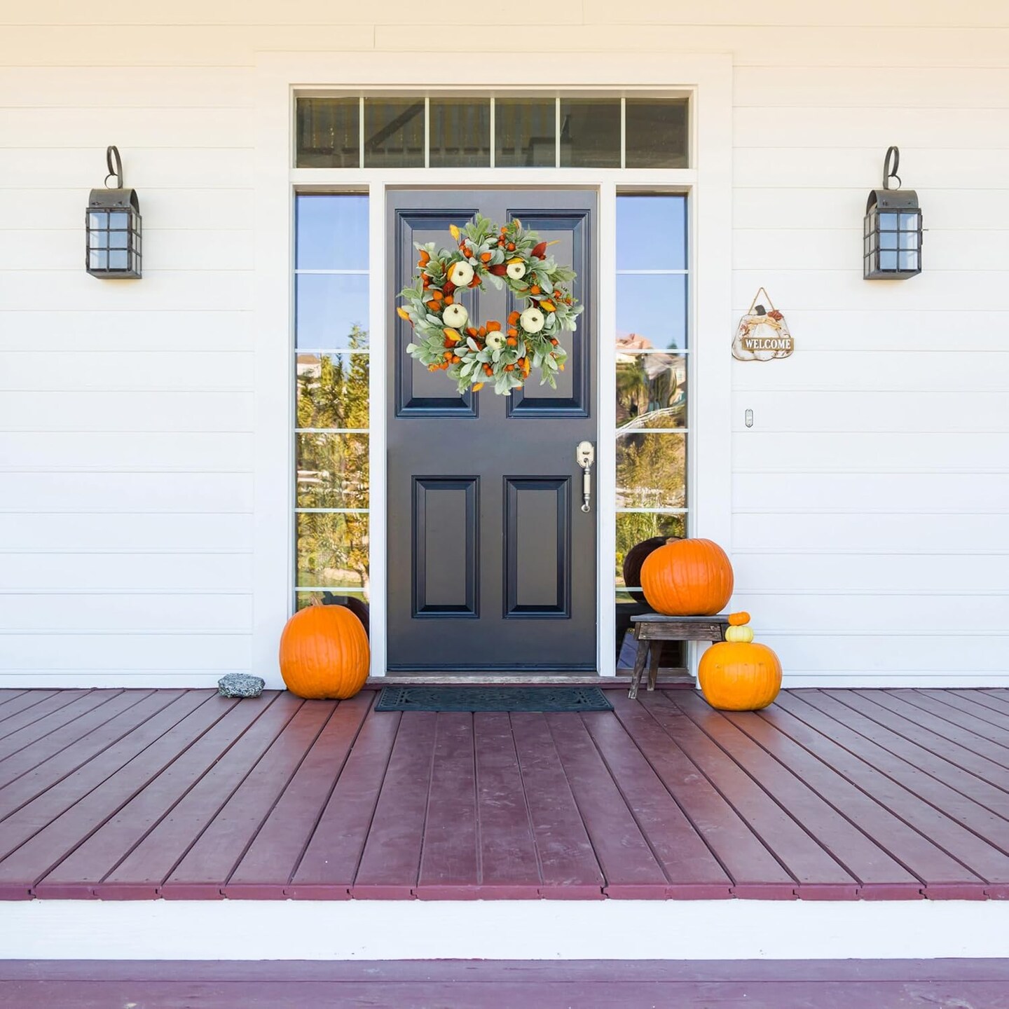 Artificial Fall Wreaths - Orange Leaf and Cream Pumpkin