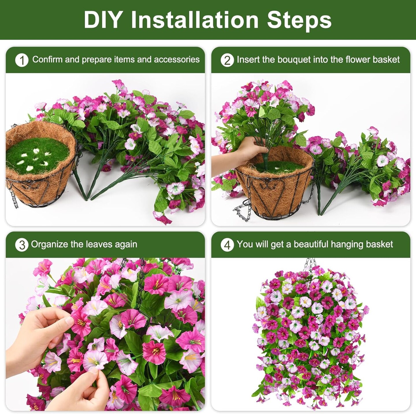 Artificial Faux Hanging Flowers Plants Baskets for Outdoor Spring Summer Decorations,Resistant Fake Morning Glory Silk Plants for Outside UV Resistant Patio Yard Home Porch Decor(Light Purple) 16"D x 16"W x 27"H