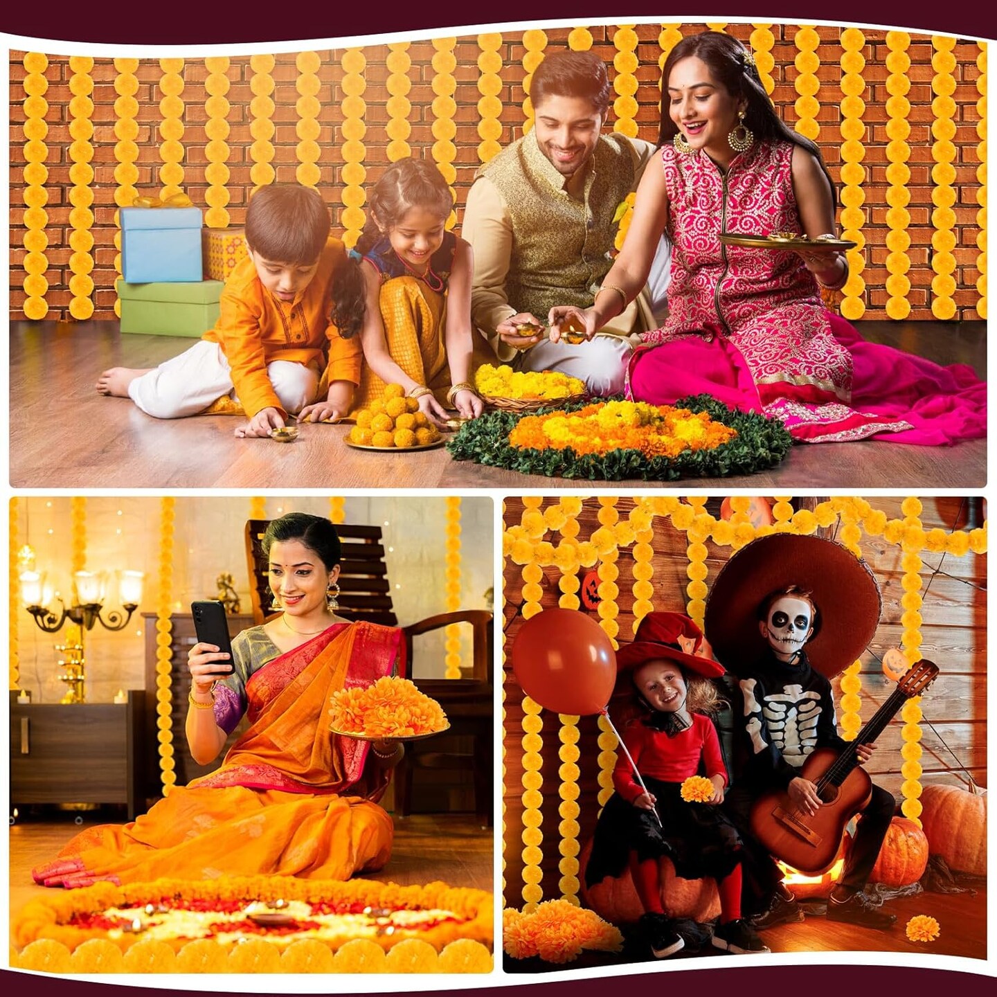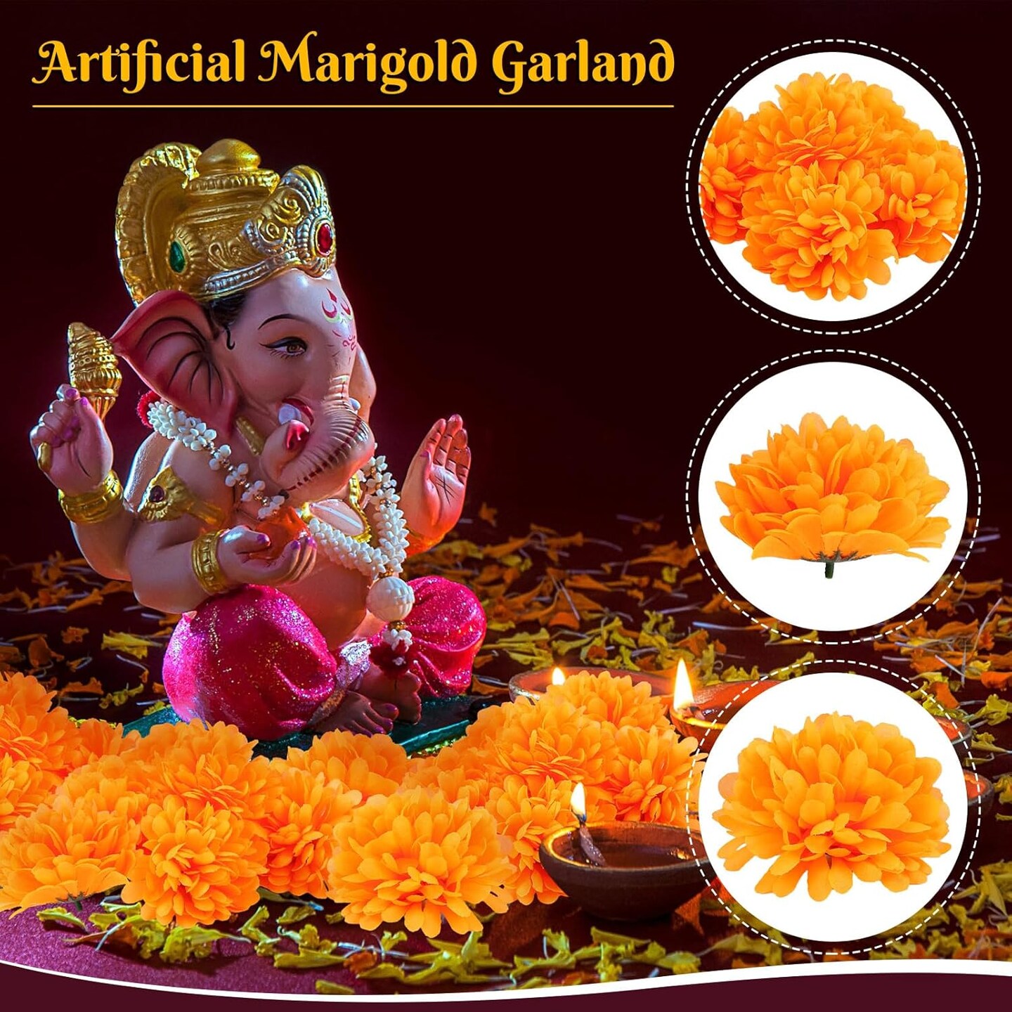 Artificial Faux Silk Orange Marigold Flower Heads Bulk (Orange)