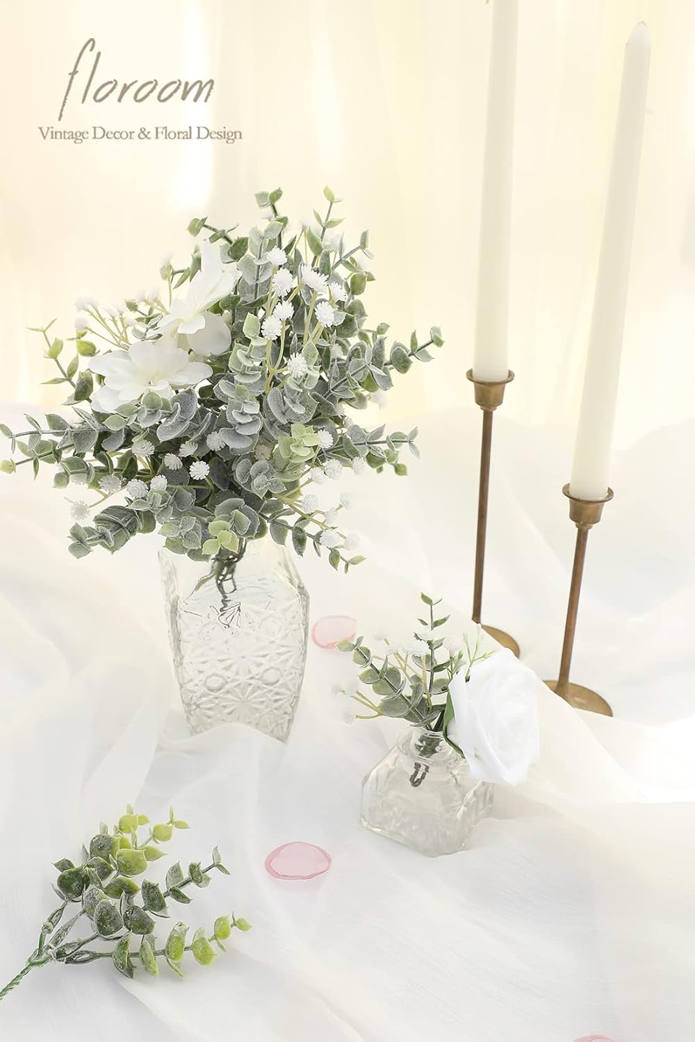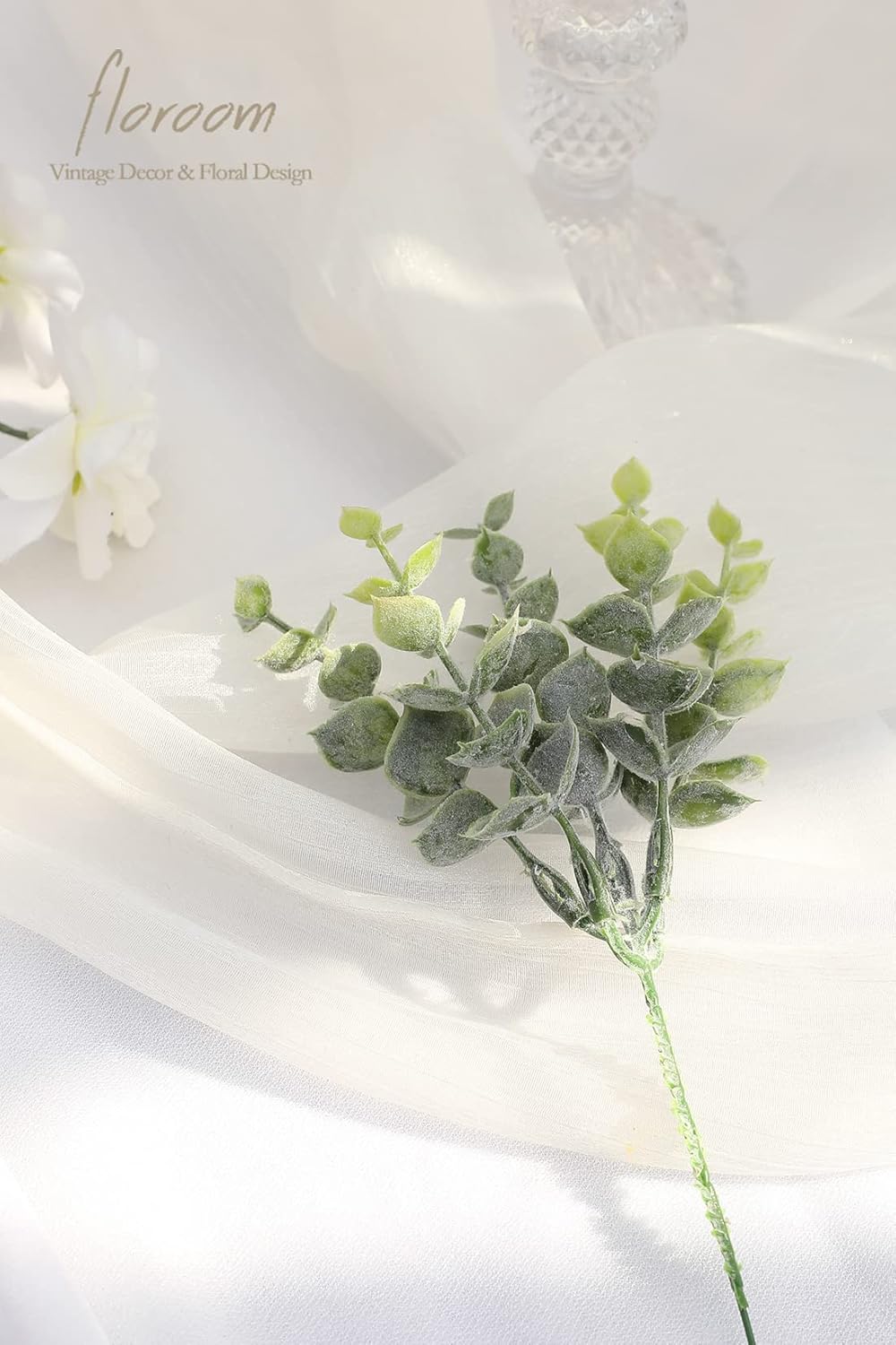 Artificial Flocked Eucalyptus Stems Faux Greenery Spray, 18pcs Best Filler Fake Plants for DIY Wedding Bouquet Centerpieces Arrangement