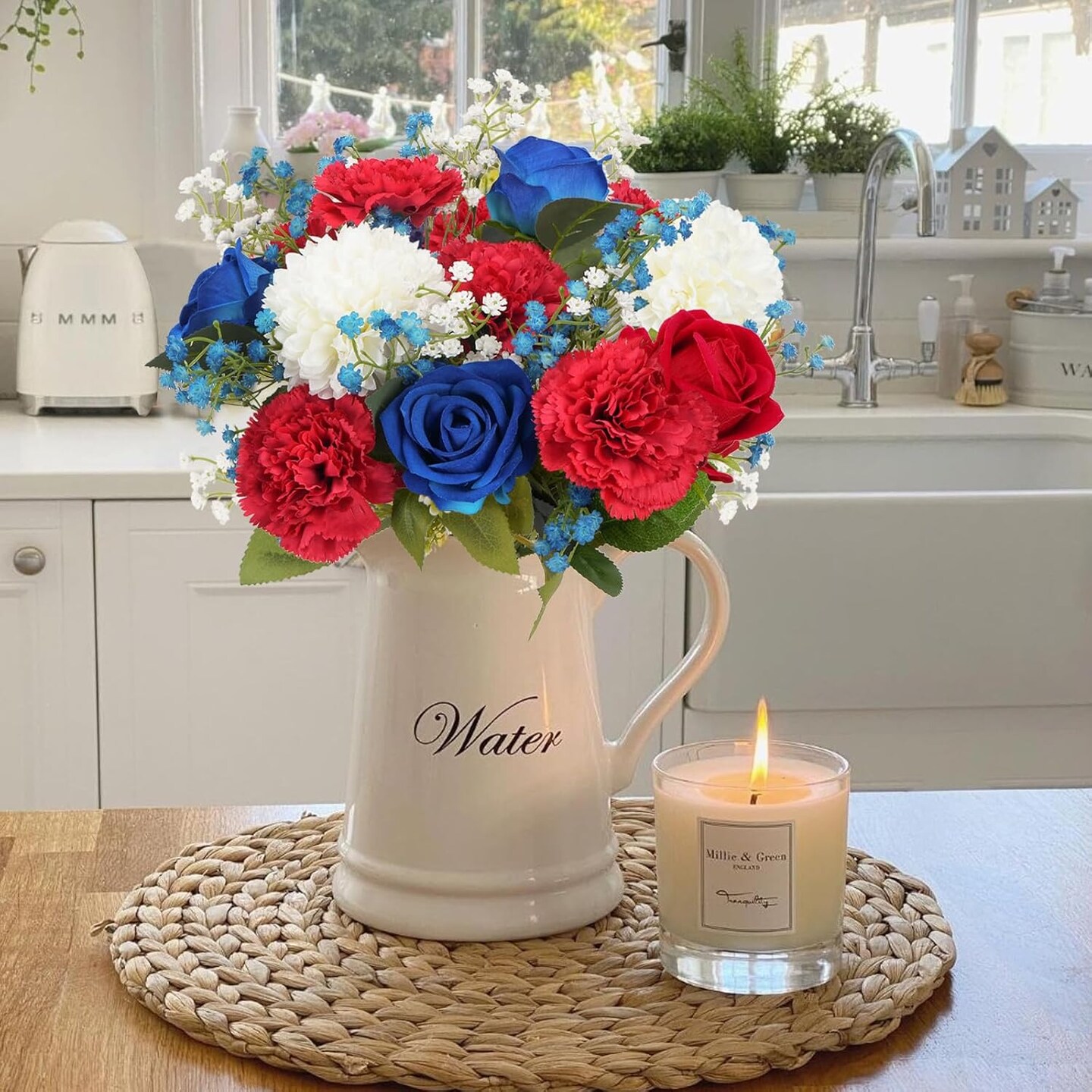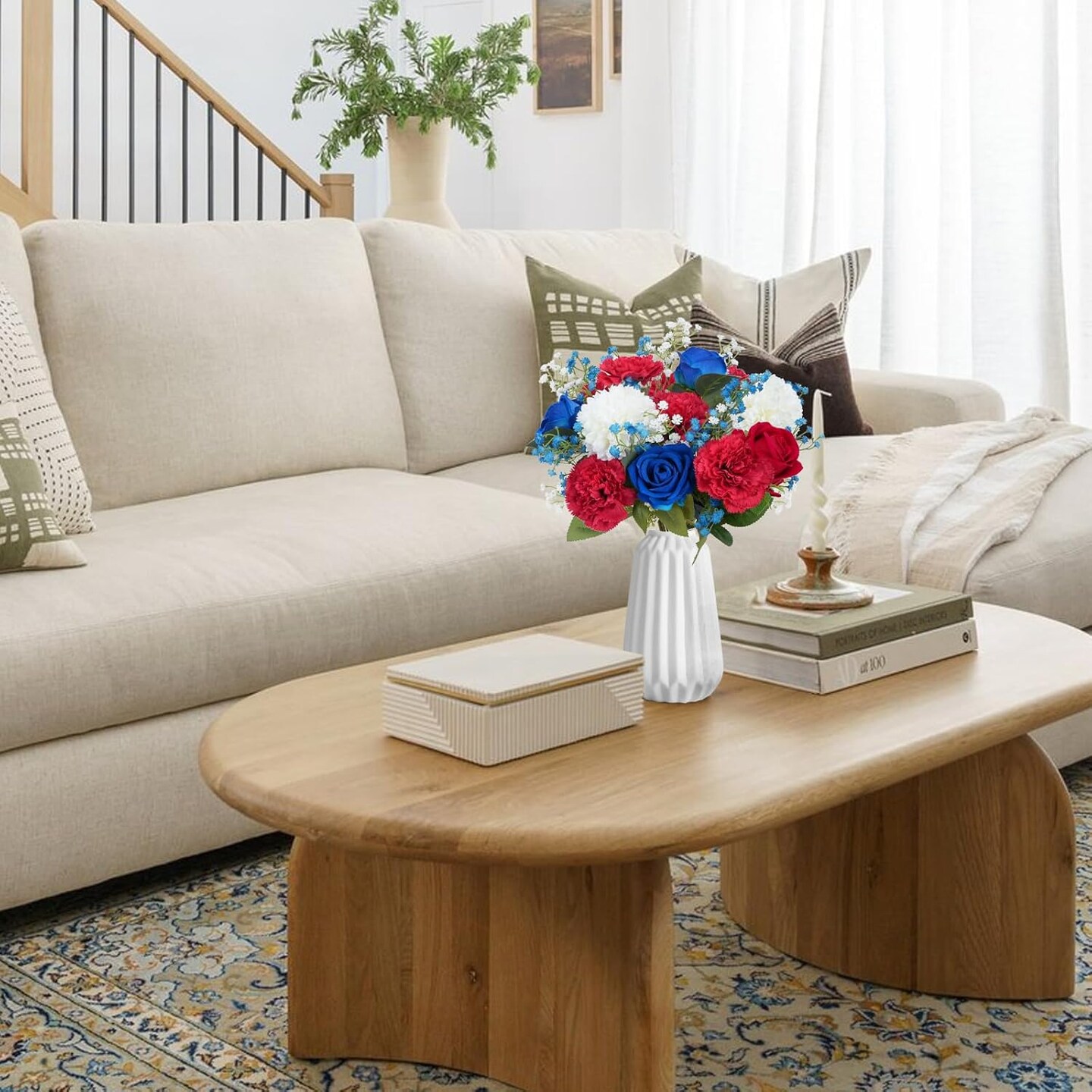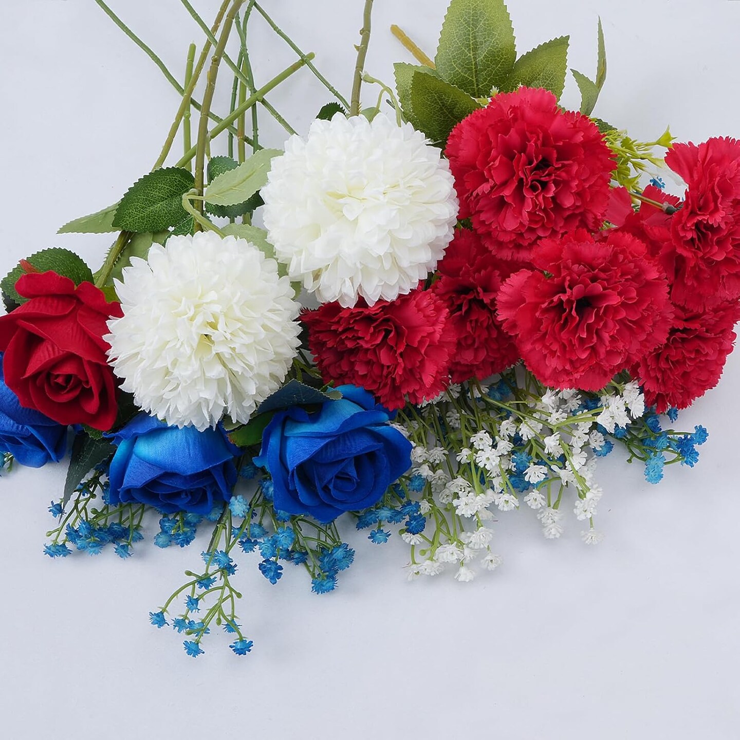 Artificial Flowers, 11PCS Mixed Bush Flower Red White and Blue Flowers