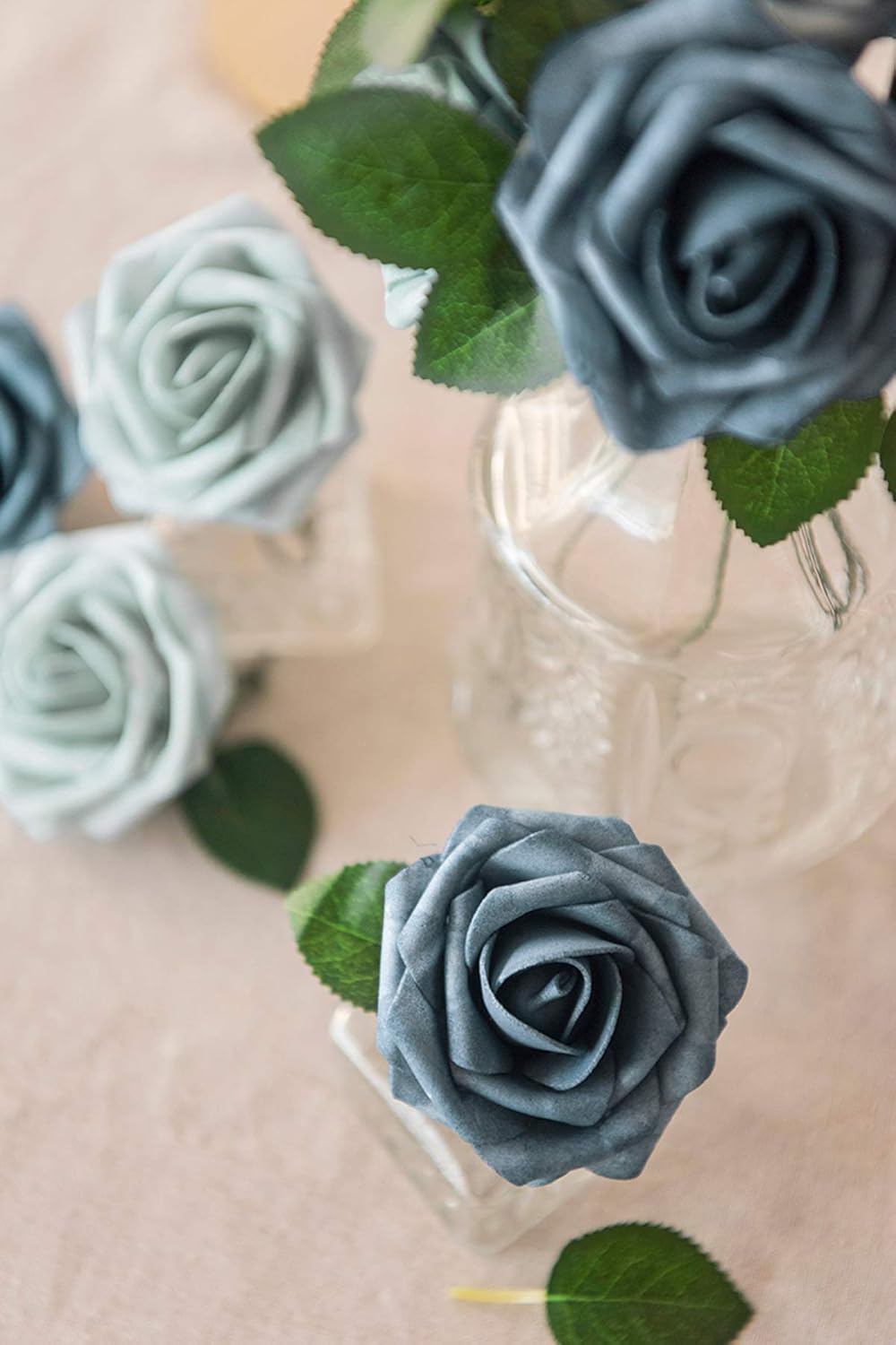 Artificial Flowers 50Pcs Dusty Blue & Navy Roses Tabletop Decor