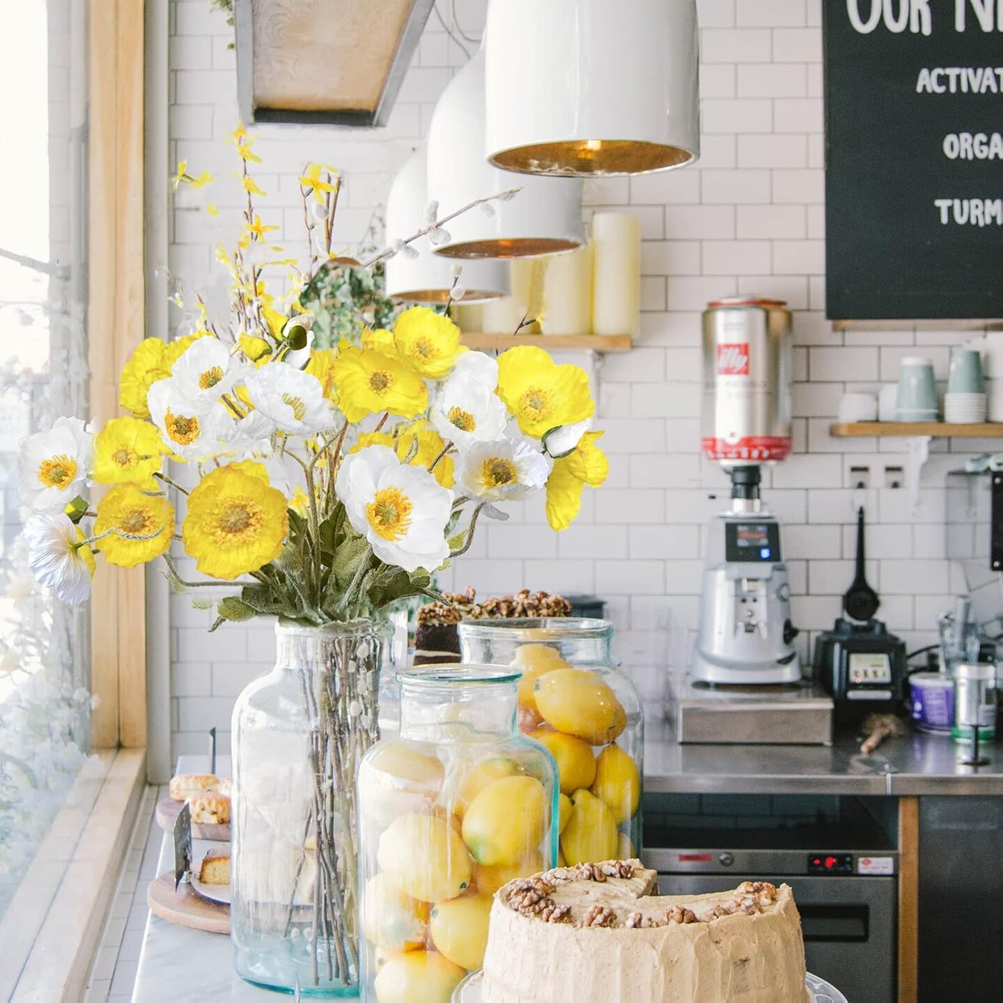 Artificial Flowers 5Pcs Poppies Flowers Artificial Silk Flowers (Yellow)