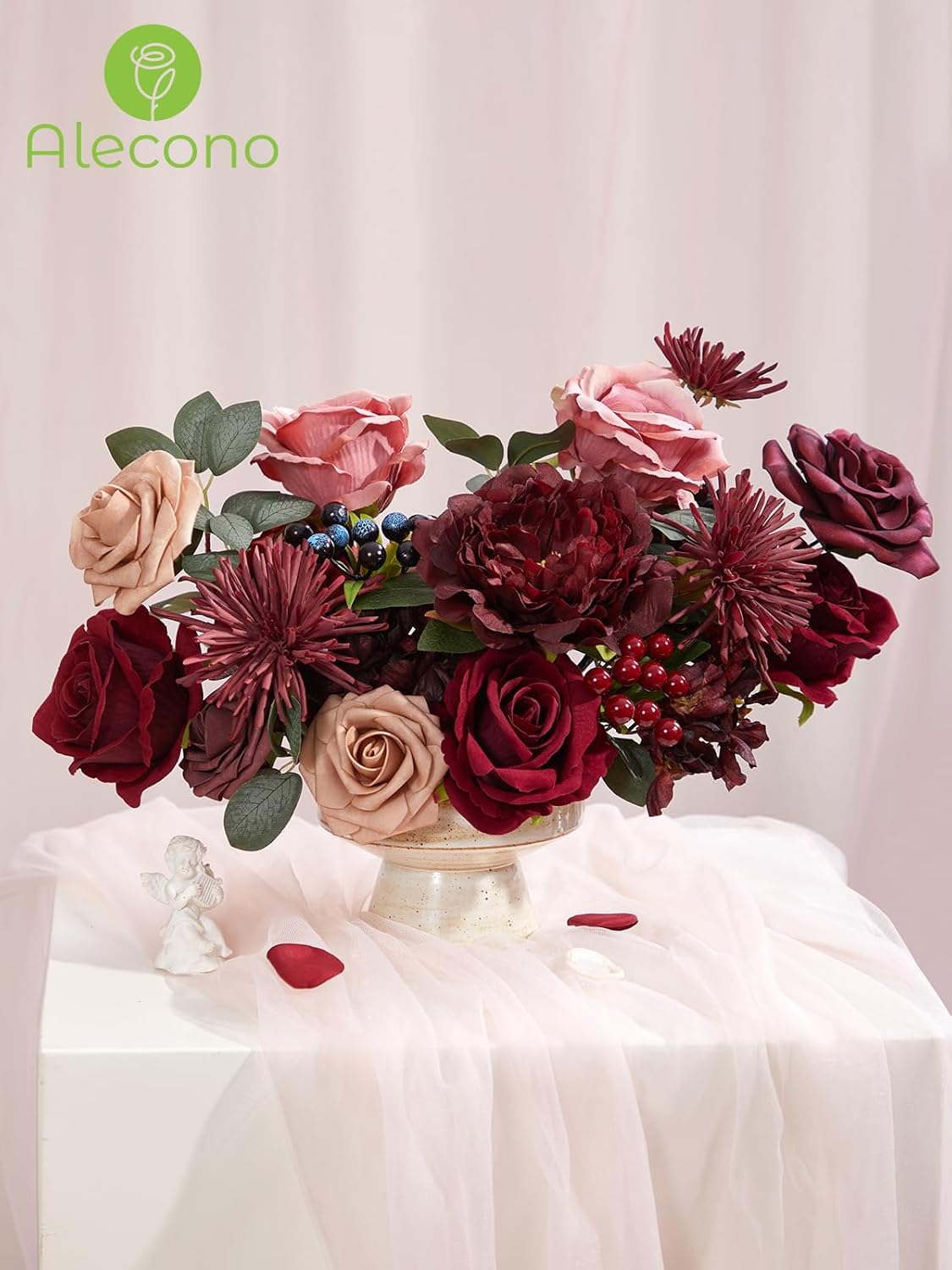Artificial Flowers Burgundy Silk Fake Flowers Bouquets