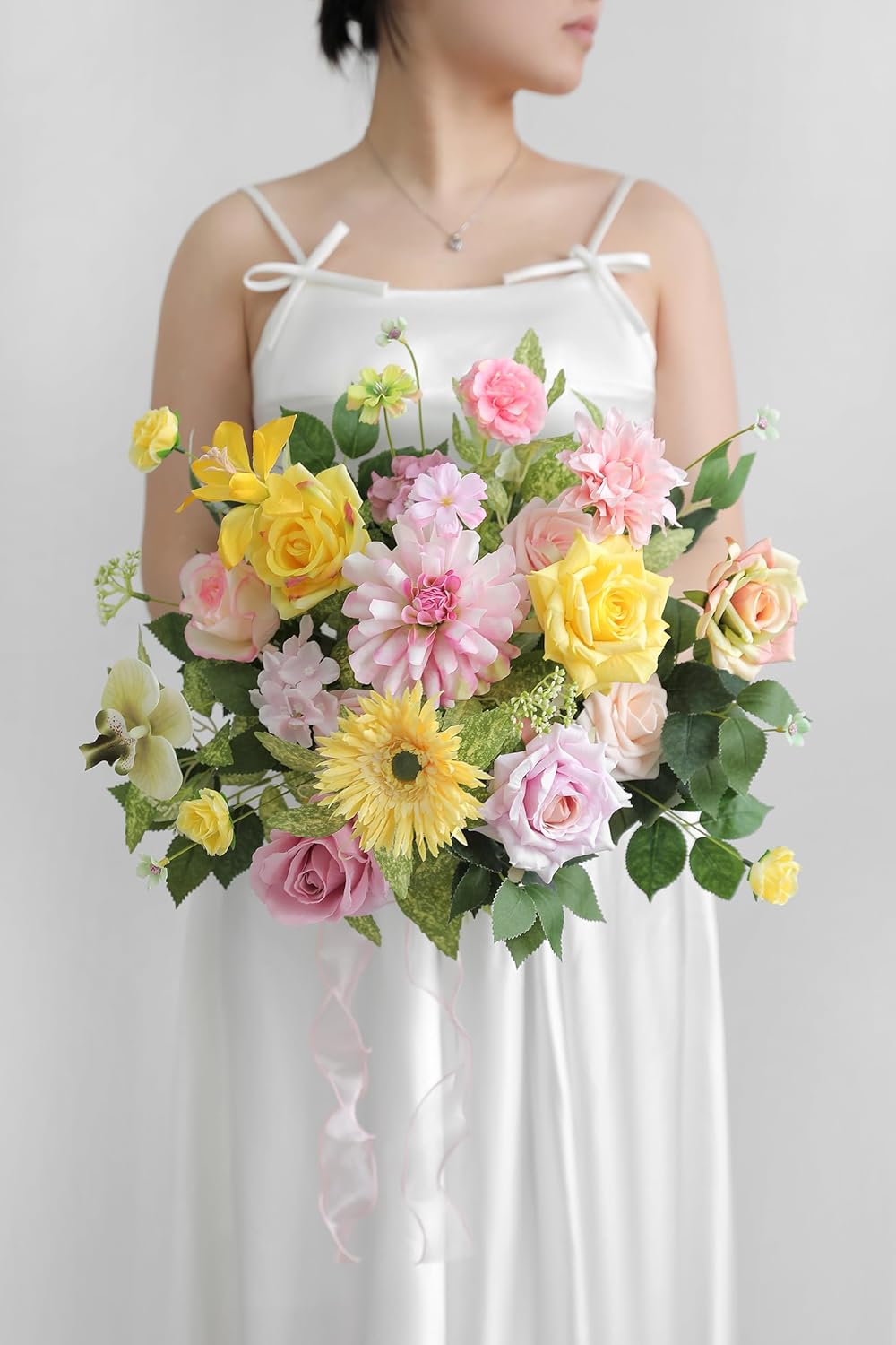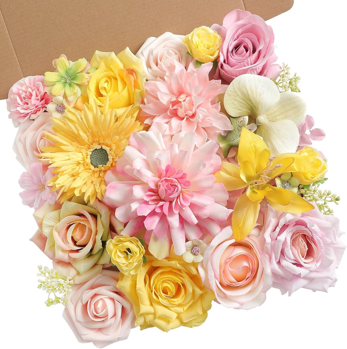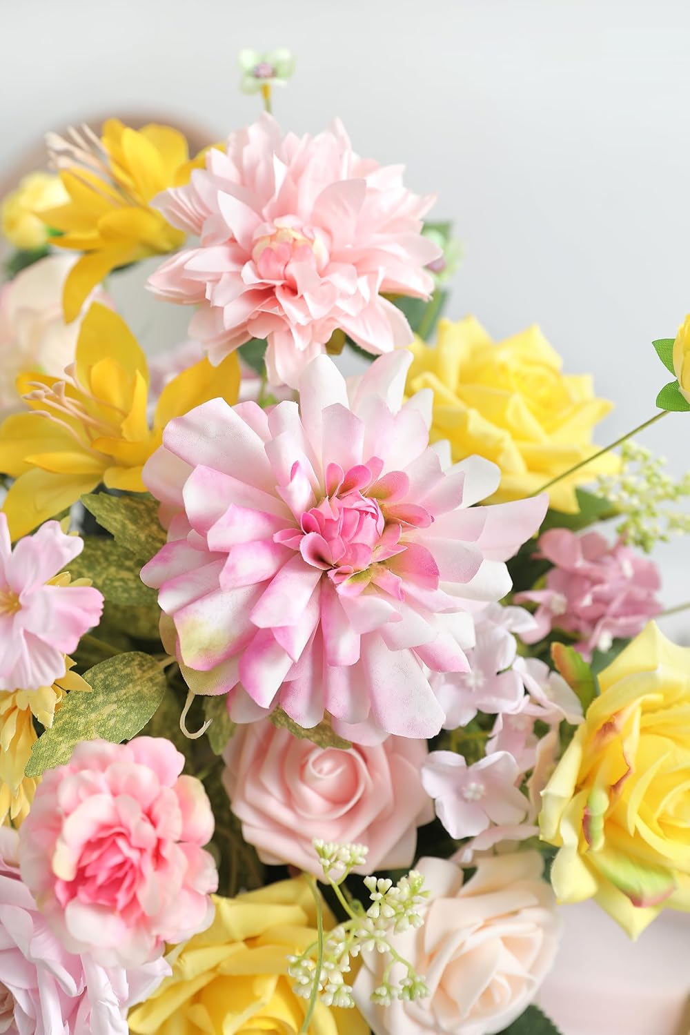 Artificial Flowers Combo Set (Yellow Pink) 9.5"D x 9.5"W x 2"H
