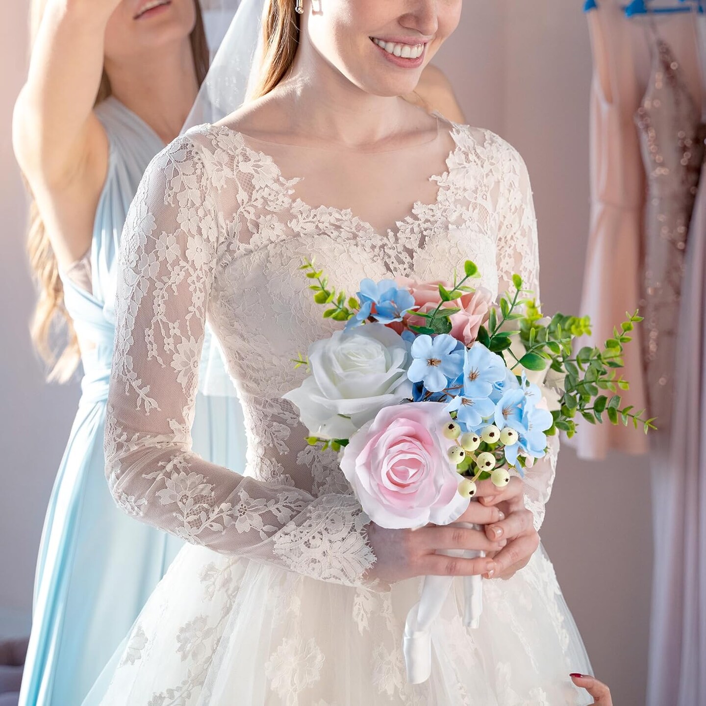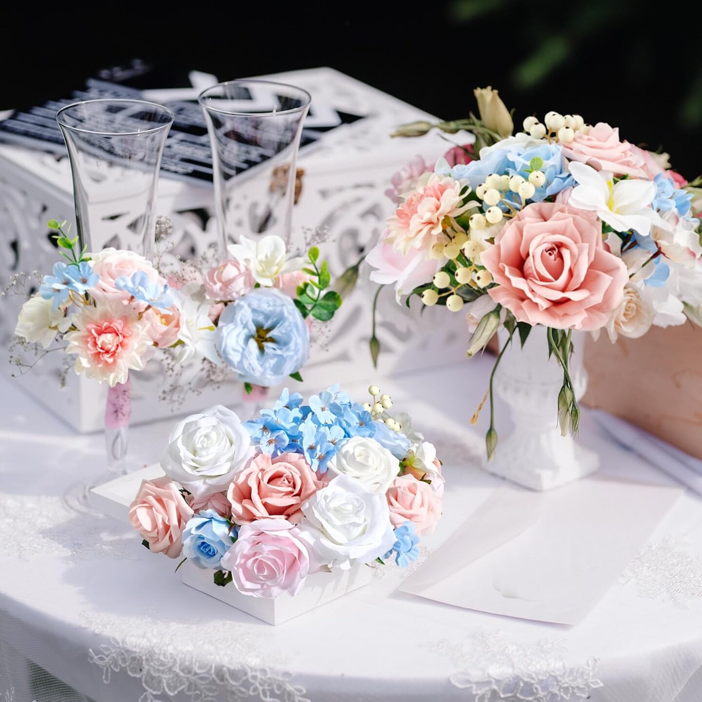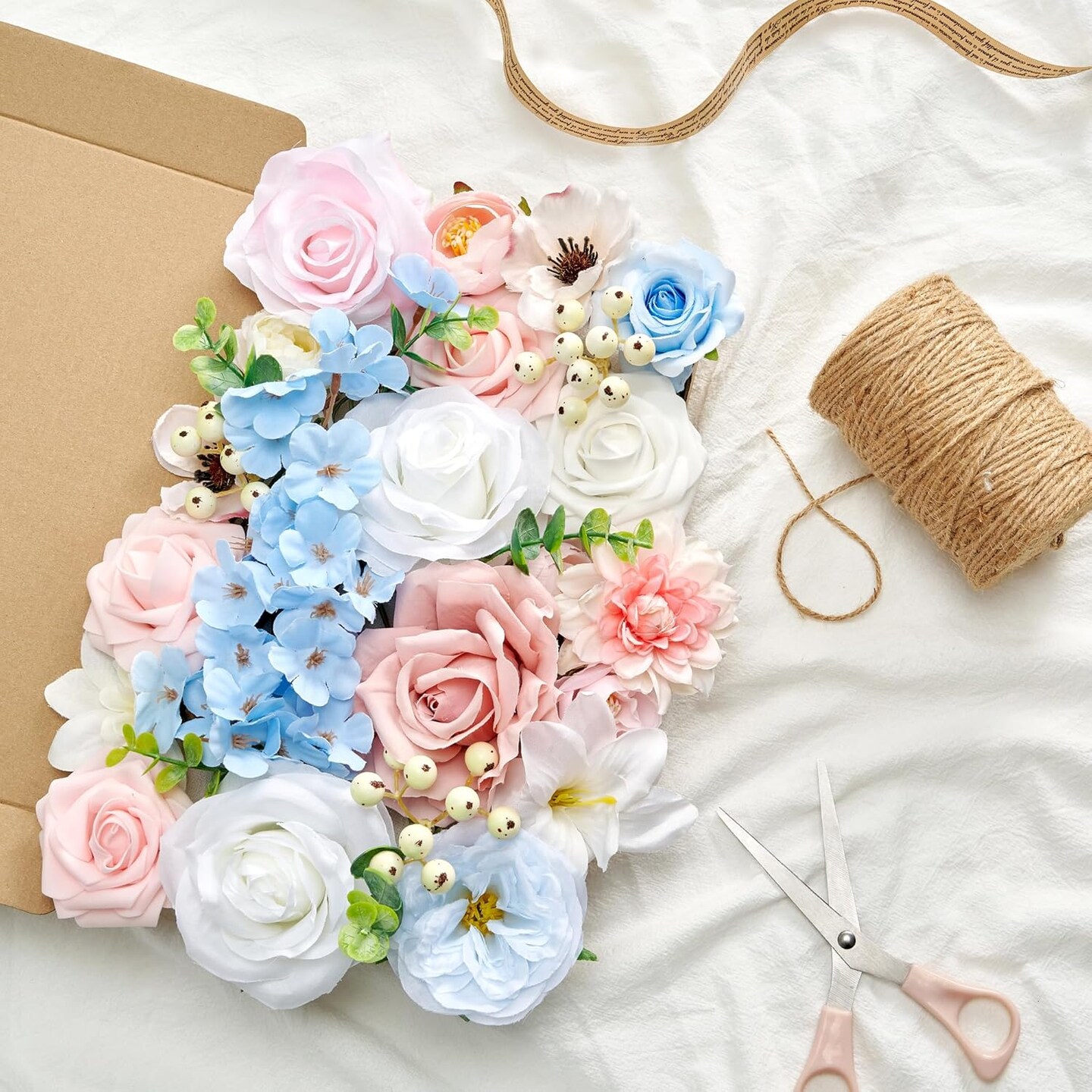 Artificial Flowers, Fake Flowers for DIY English Pastel Flower Box Wedding Bouquet Table Centerpieces Baby Shower Gender Reveal Party Home Décor