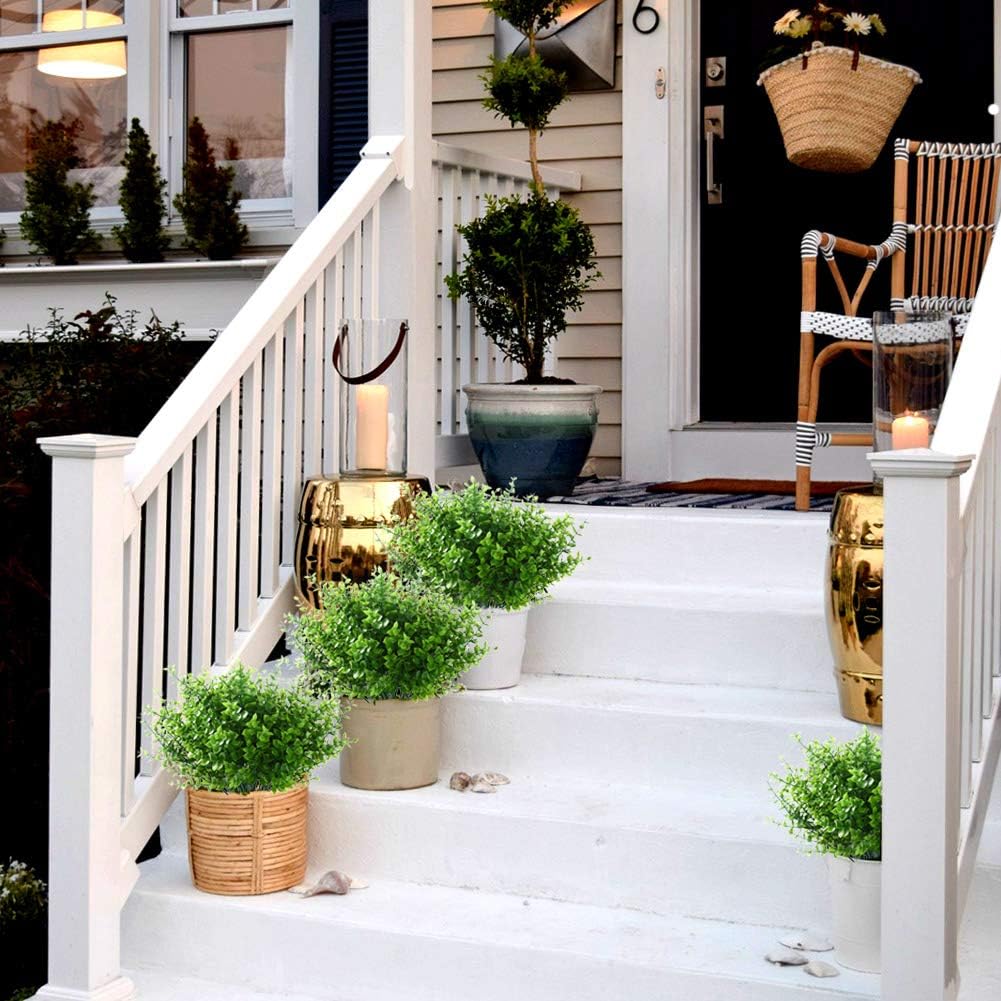 Artificial Flowers Outdoor Fake Flowers for Decoration UV Resistant No Fade Faux Plastic Plants Garden Porch Window Box Décor (8 Bundles, 1#Green)