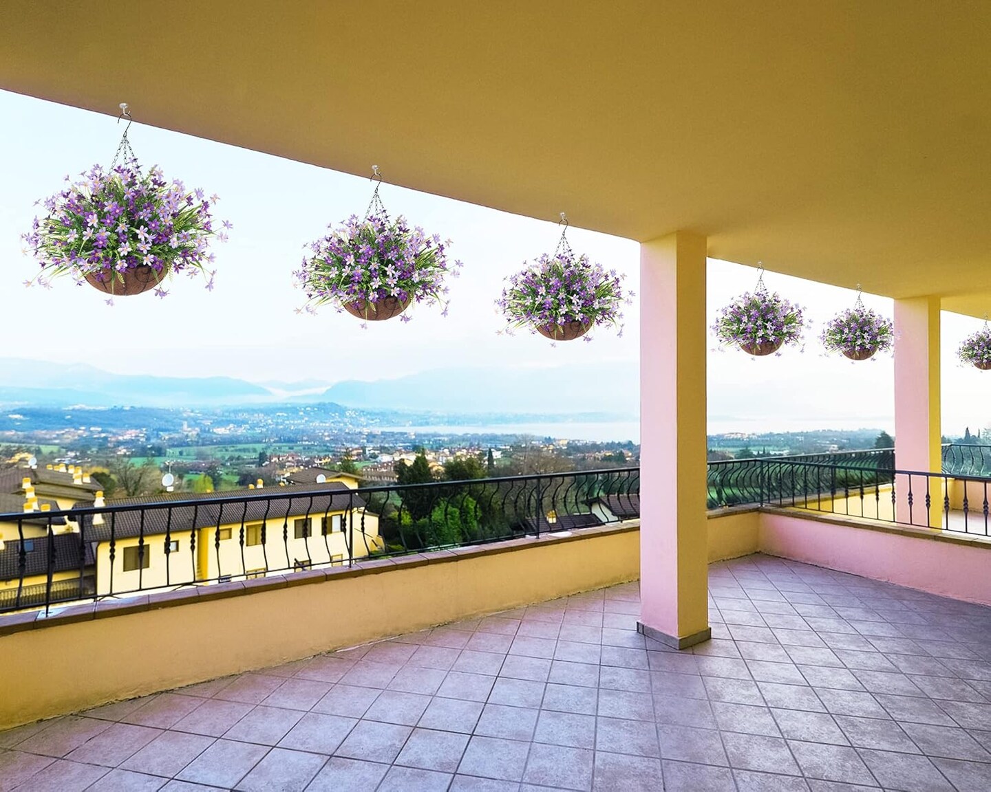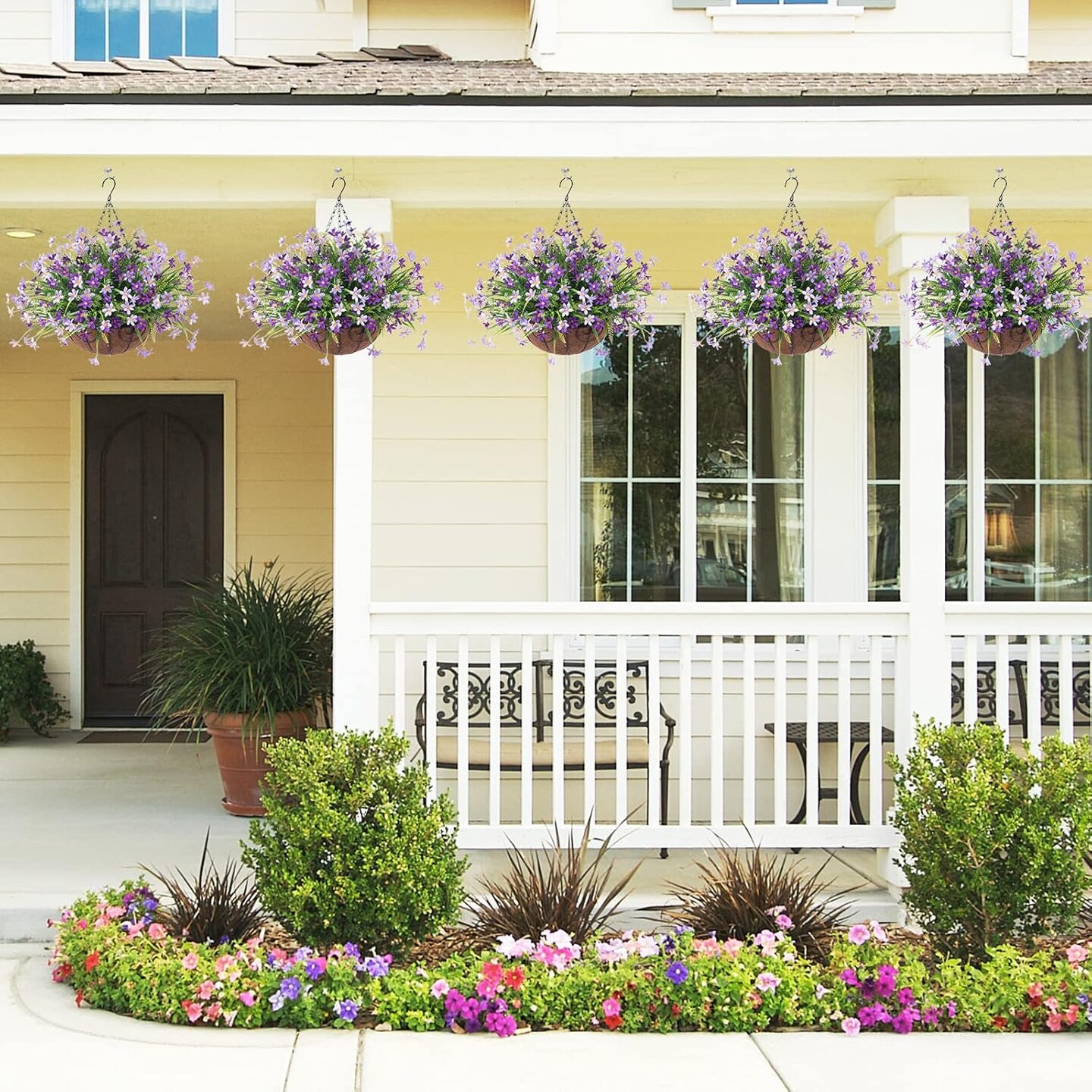 Artificial Flowers with Hanging Basket for Outdoor Decoration