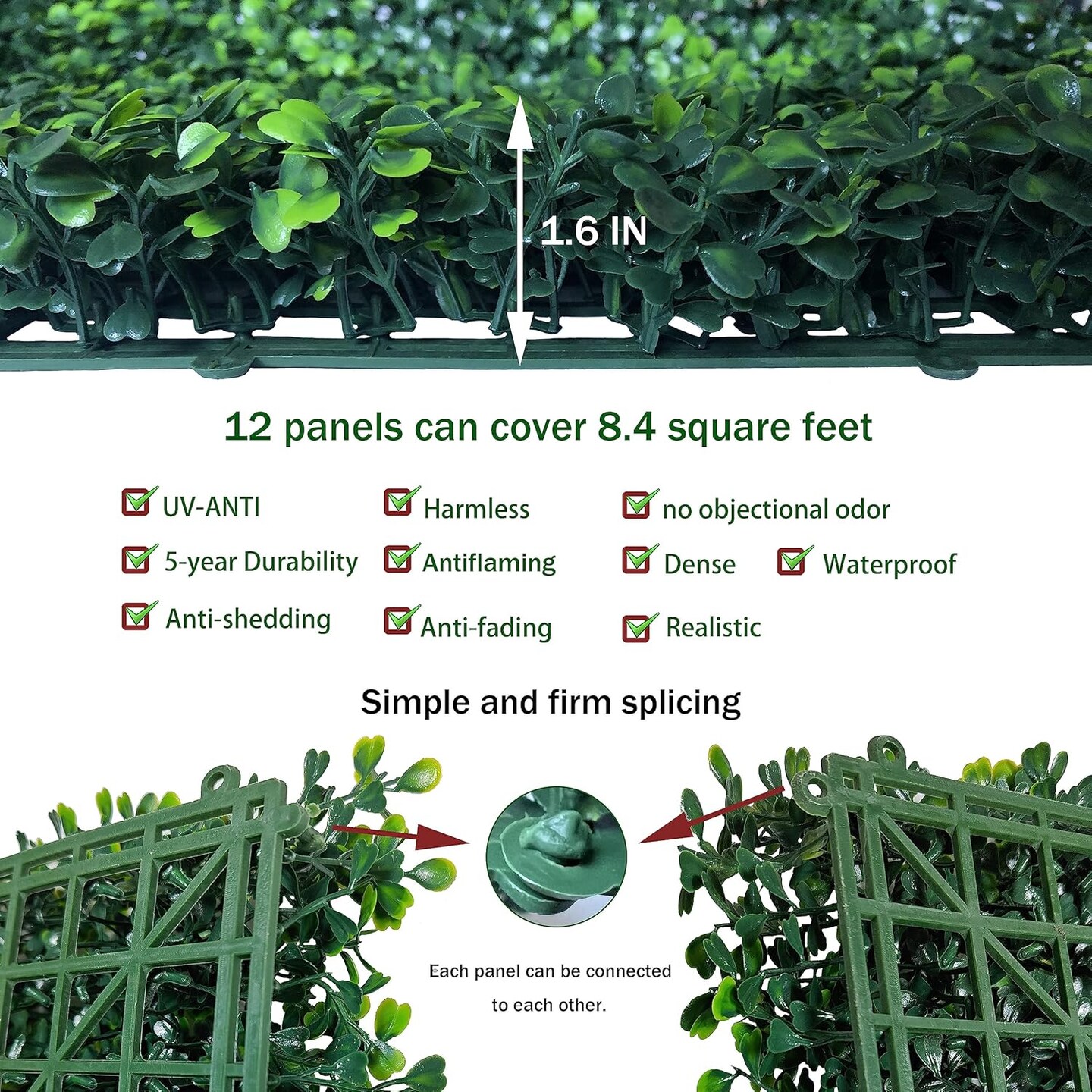 Artificial Grass Wall Panel Backdrop,10" X 10" 12P (Green) 10"L x 10"W