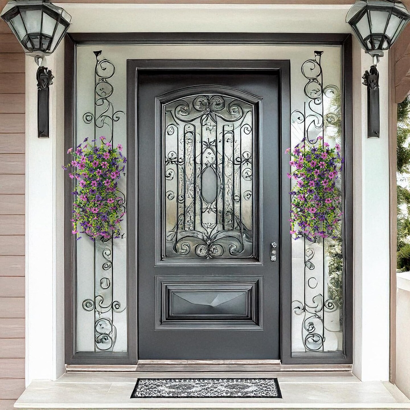 Artificial Hanging Flowers – Outdoor Spring Decoration, Double Purple (6.2"x6.2"x25.6")