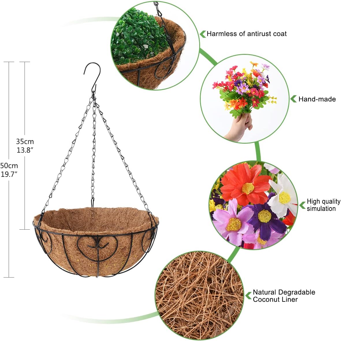 Artificial Hanging Flowers Plants in Baskets for Outdoor Porch Decoration