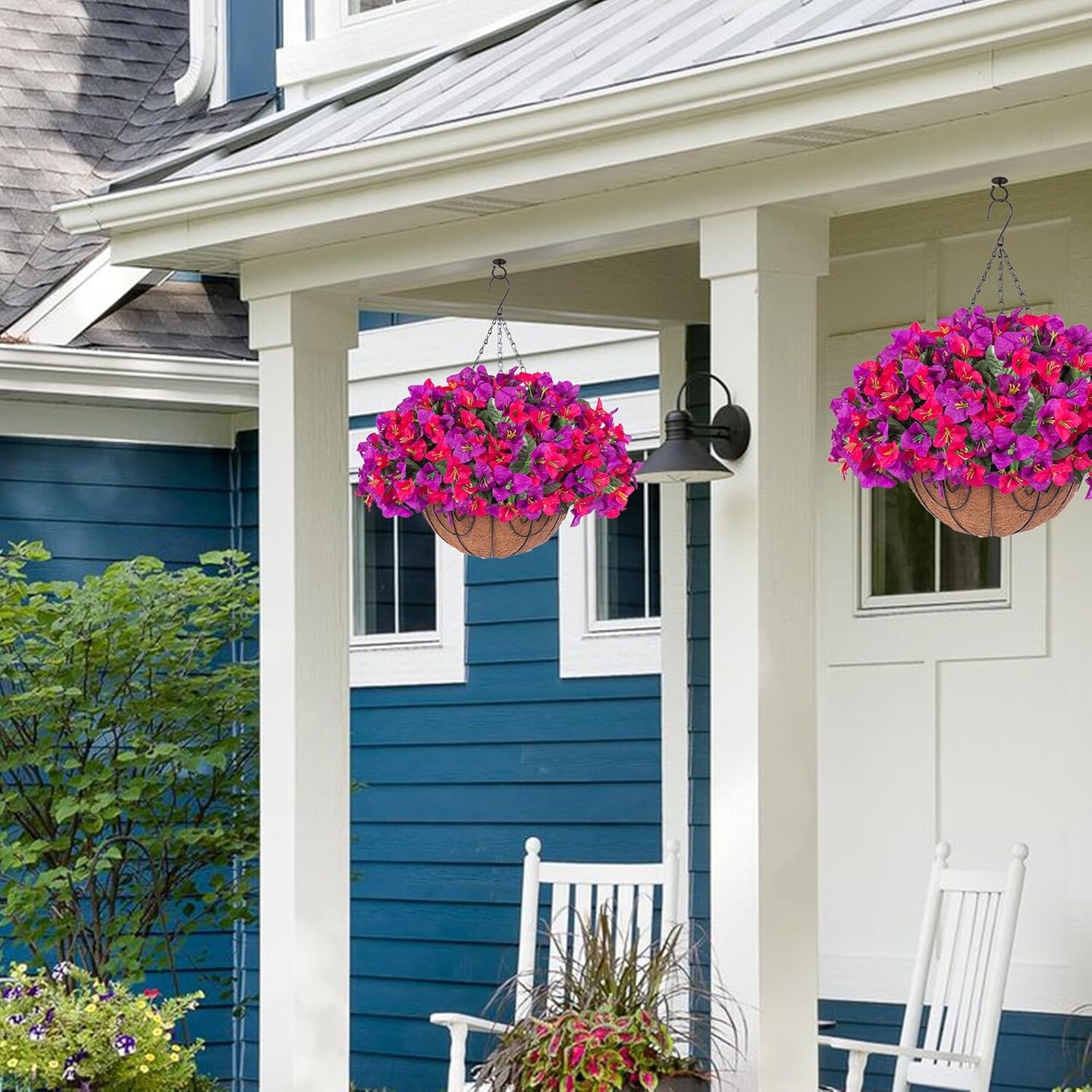 Artificial Hanging Flowers with Basket for Spring ((PurpleHotpink)