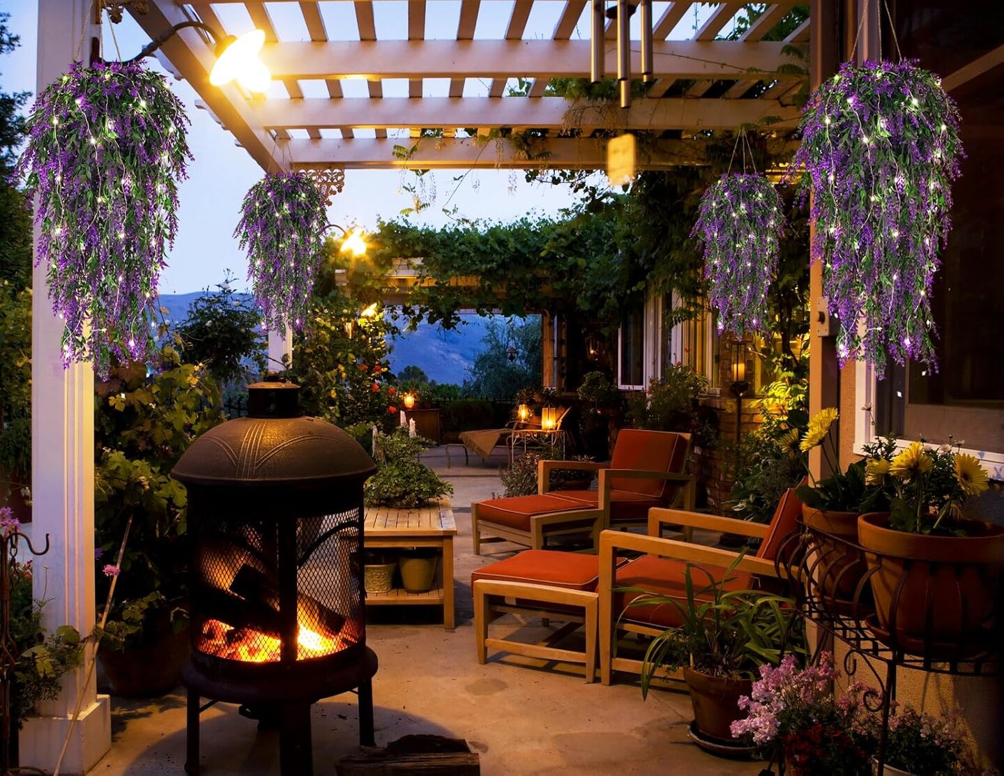 Artificial Hanging Flowers with LED Lights (Purple) 2.5"D x 8"W x 30"H
