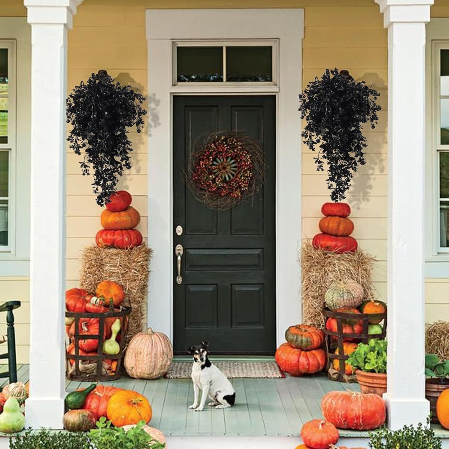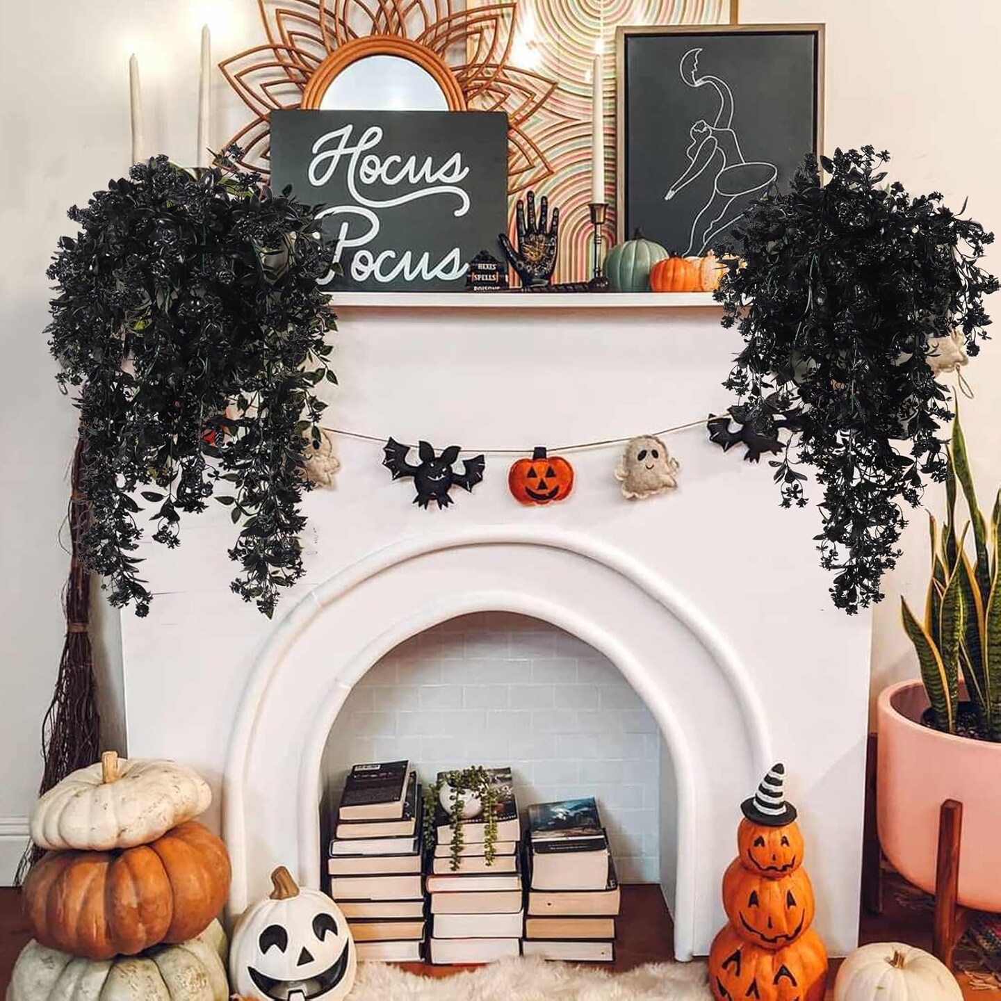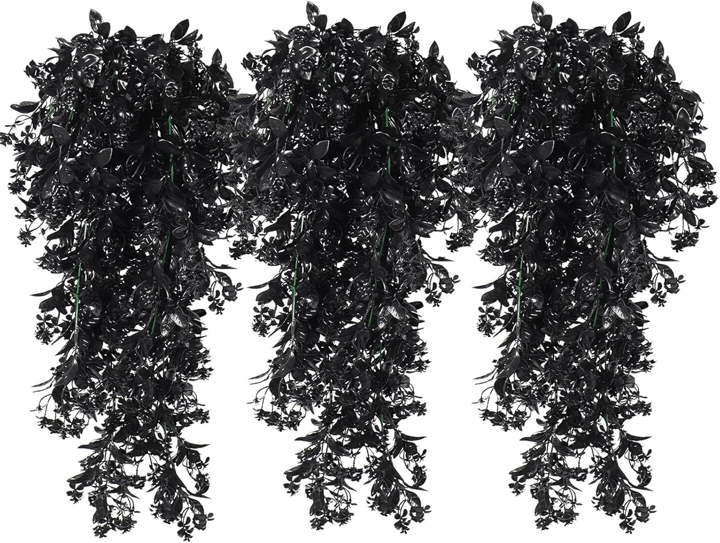 Artificial Hanging Plant Faux Ivy Flowers - Black