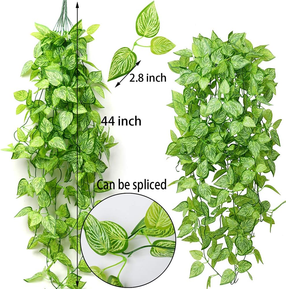 Artificial Hanging Plants 2pcs Fake Hanging Ivy Plants UV Resistant Plastic (Green) 9.8"D x 9.8"W x 44"H