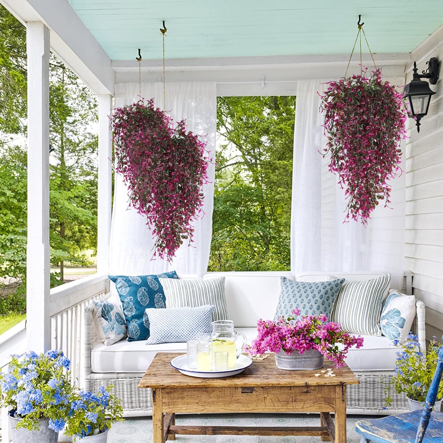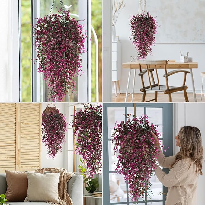 Artificial Hanging Plants 4pcs 33Inch Faux Eucalyptus Leaves Ivy Swag Plant UV Resistant Fake Plastic Greenery Indoor Outdoor Home Garden Office Christmas Xmas Party Spring Decor(Purple Red)