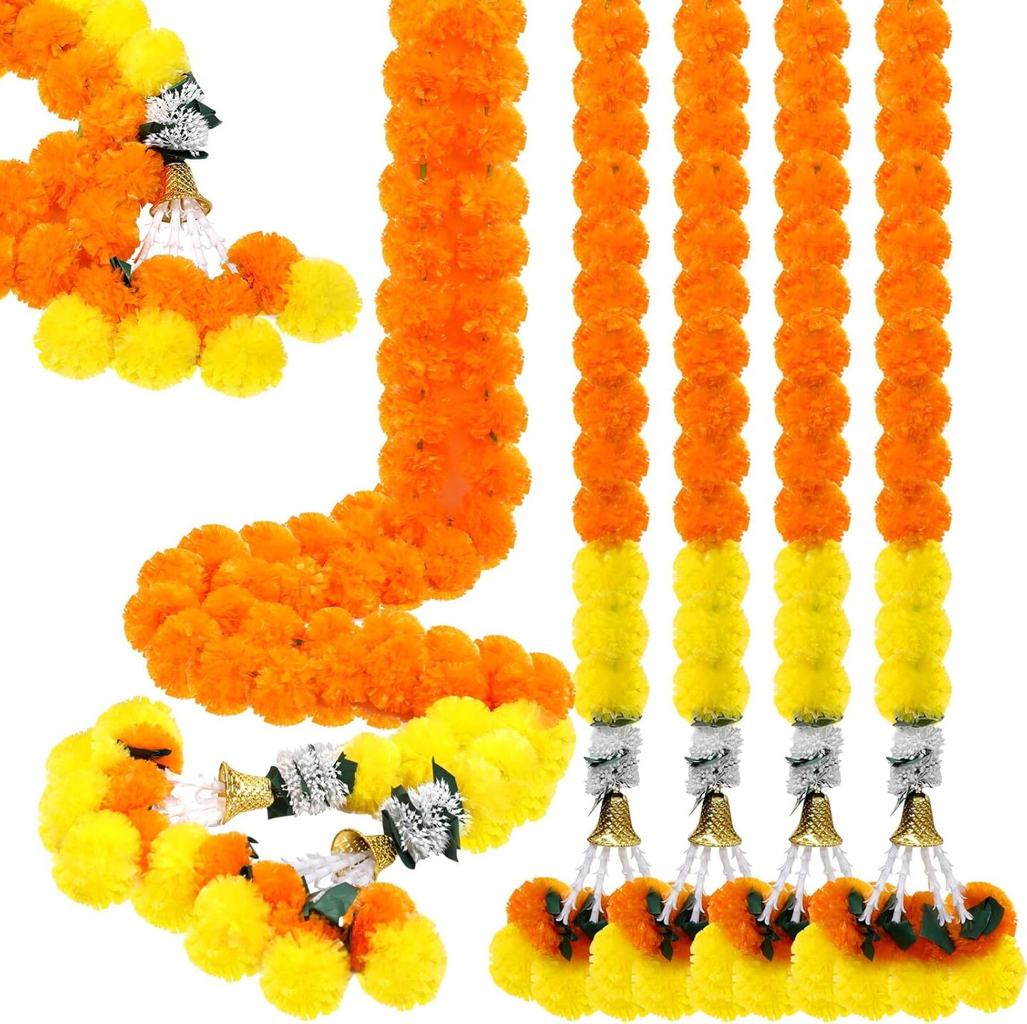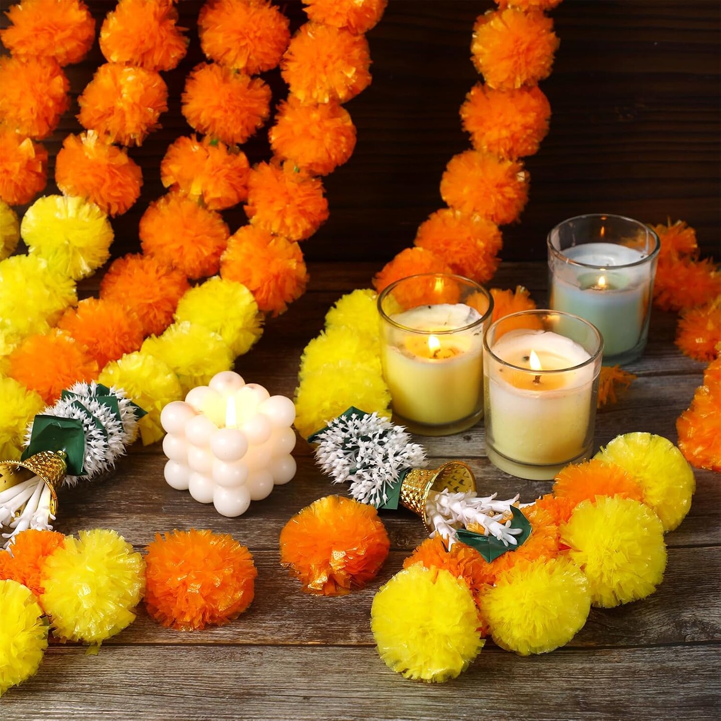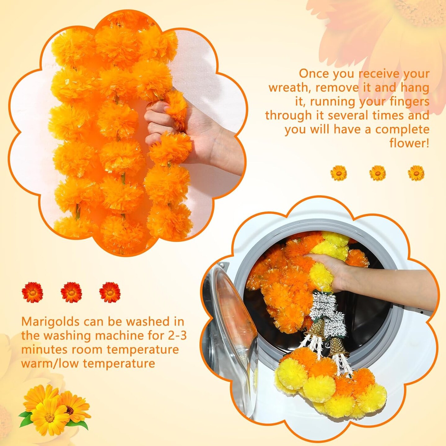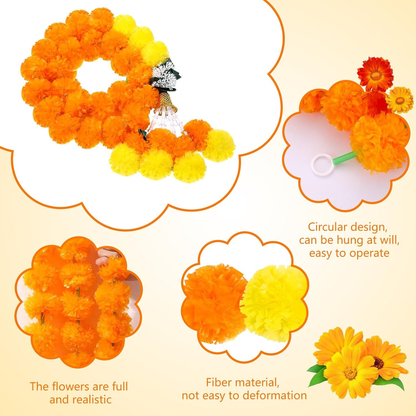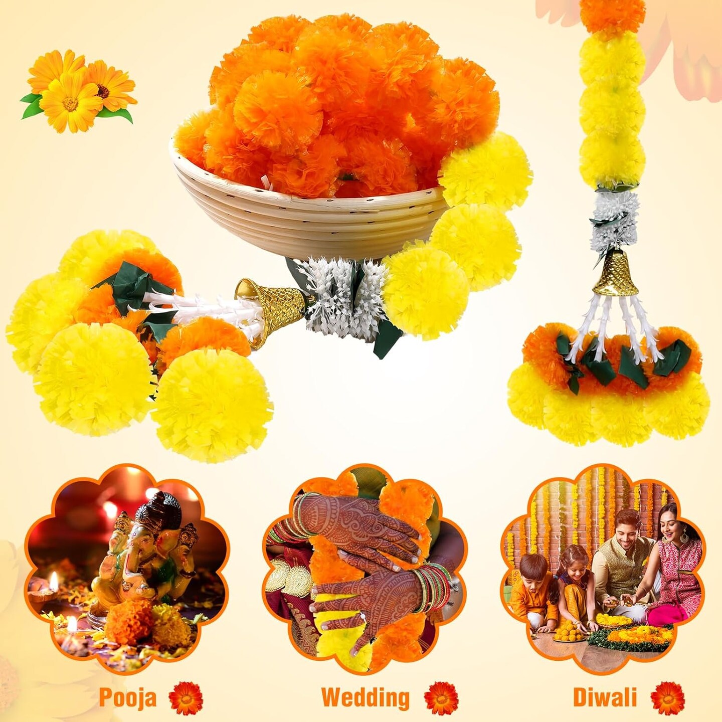 Artificial Indian Marigold Flowers Decor Long Strands (Light Orange)