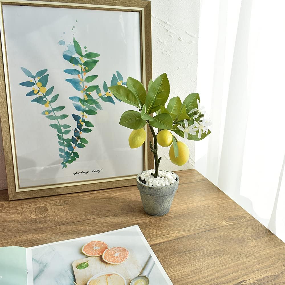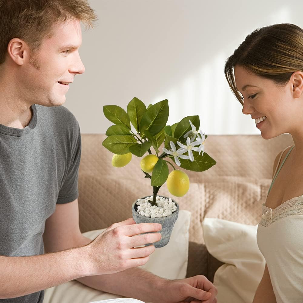 Artificial Lemon Tree Topiary, Mini Potted Lemon Tree with White Pebbles, Potted Fake Plants for Flower Home Party Garden Office Table Decoration